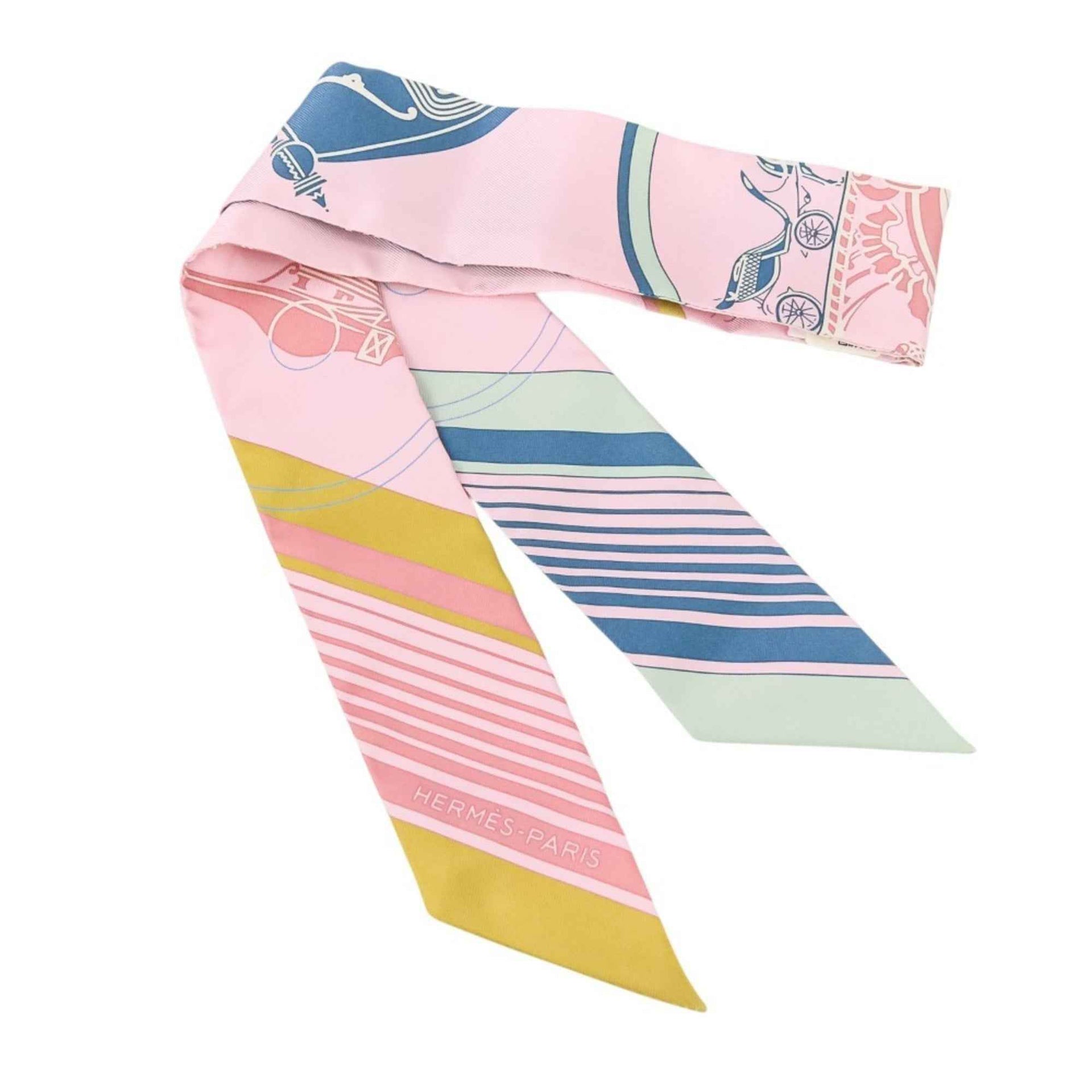 HERMES Twilly Ex-Libris Silk Scarf/Muffler in Rose Pale Ocher Vert for Women