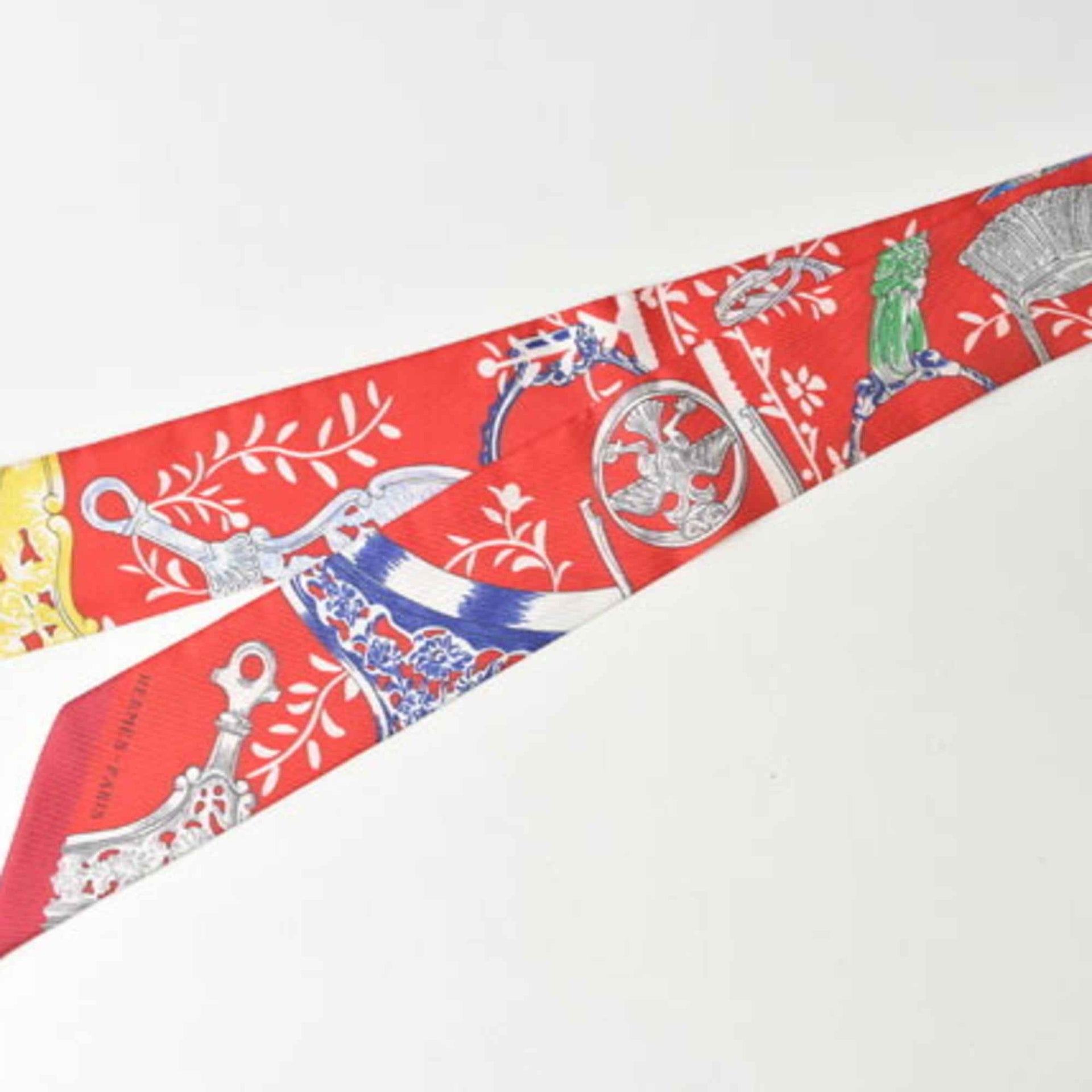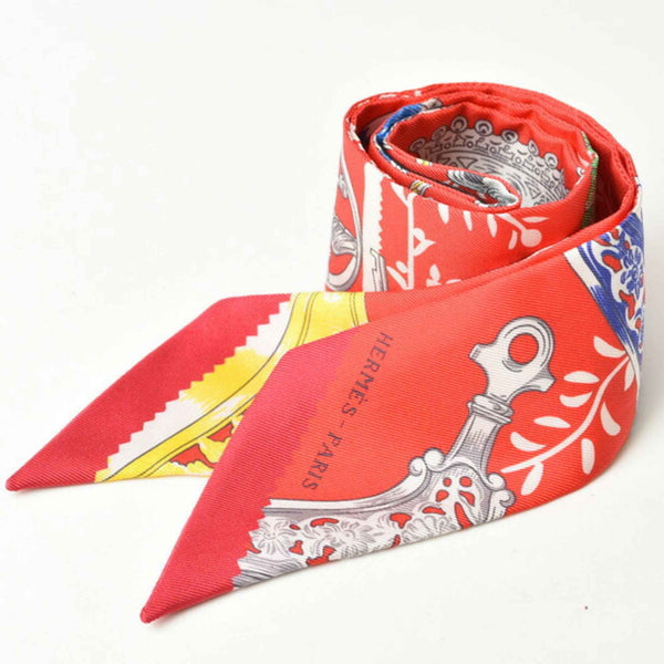 Hermes Twilly Scarf Muffler HERMES Silk Twill Rouge Blue