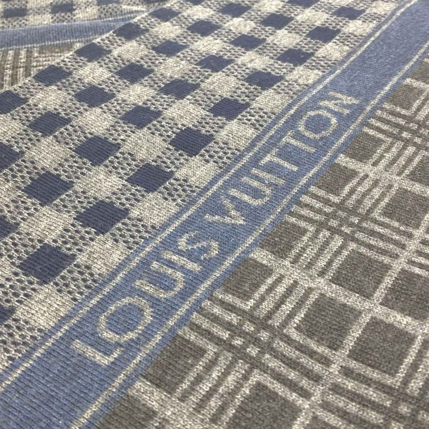 LOUIS VUITTON M74955 Echarpe Tartan Check Wool Scarf Men\'s Gray
