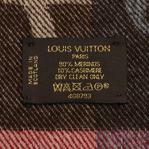 Louis Vuitton Scarf 408793 Brown Multicolor Wool Cashmere Women\'s LOUIS VUITTON