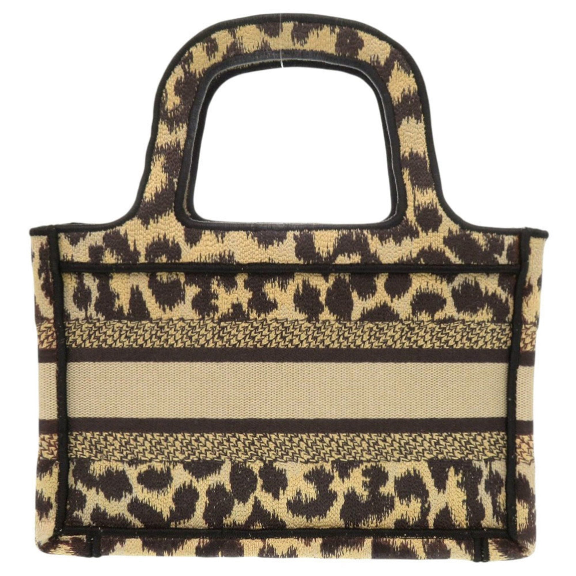 Christian Dior Book Tote Mini Leopard Canvas Beige Handbag 0760
