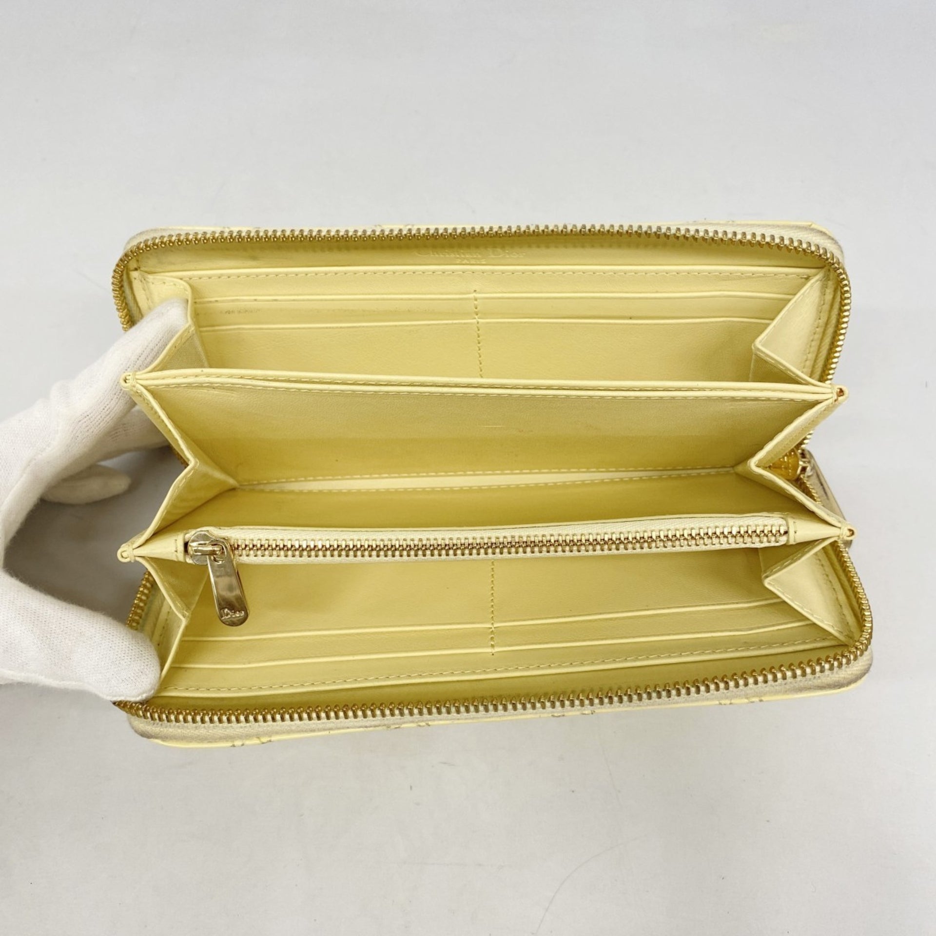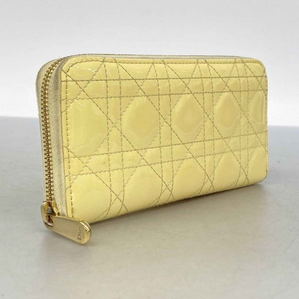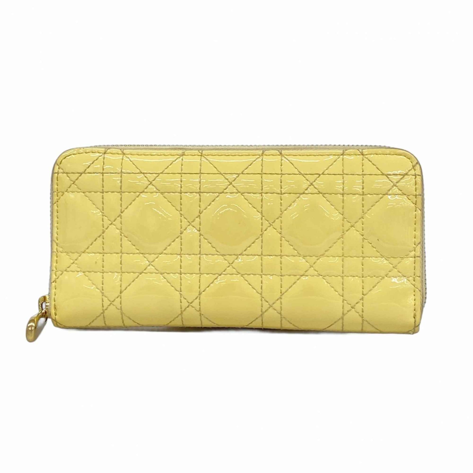 Christian Dior Cannage Enamel Long Wallet, Yellow, Women\'s