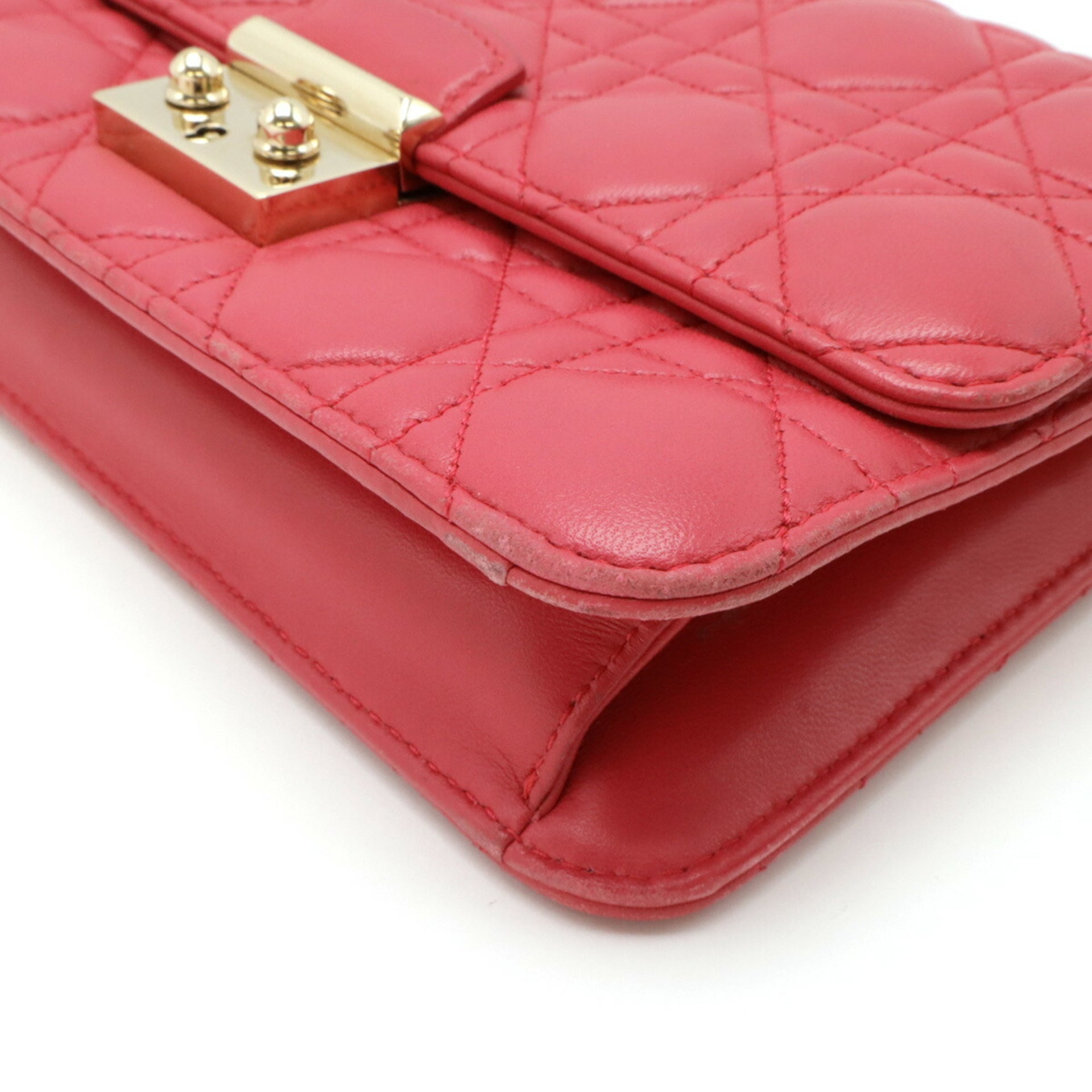Christian Dior Cannage New Rock Chain Wallet Clutch Bag Leather Fuchsia Pink