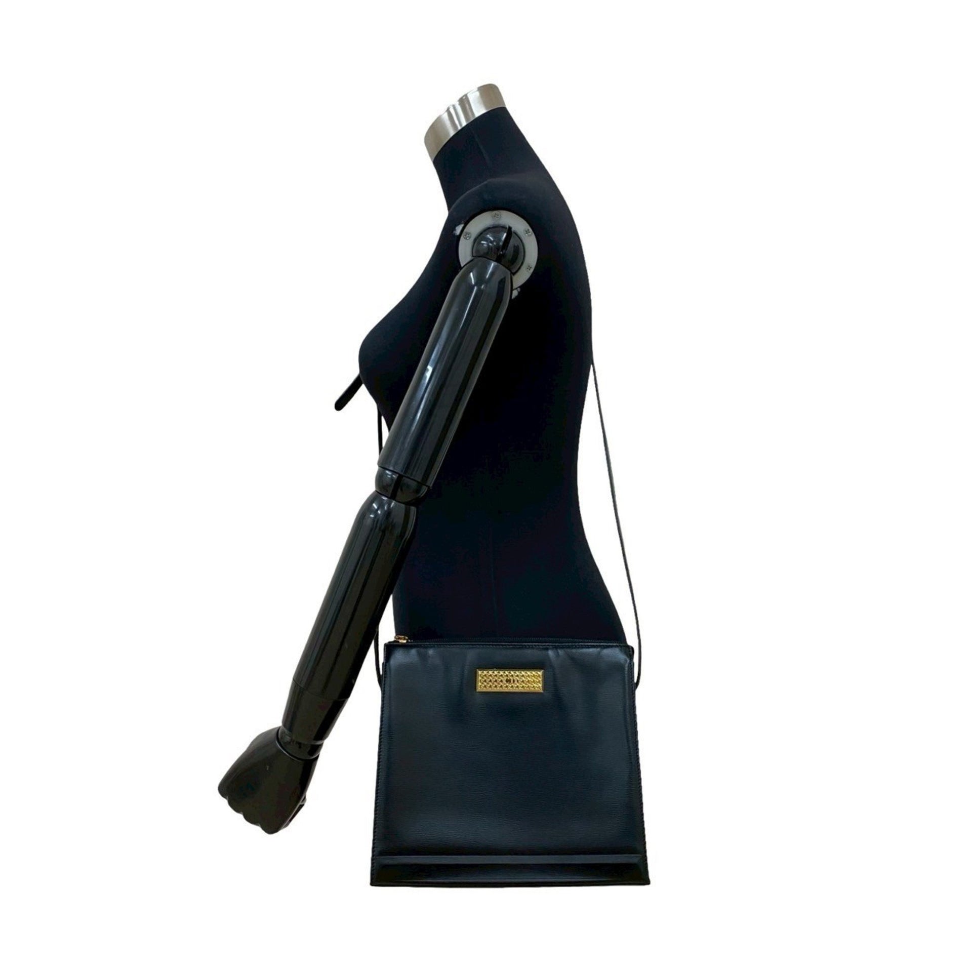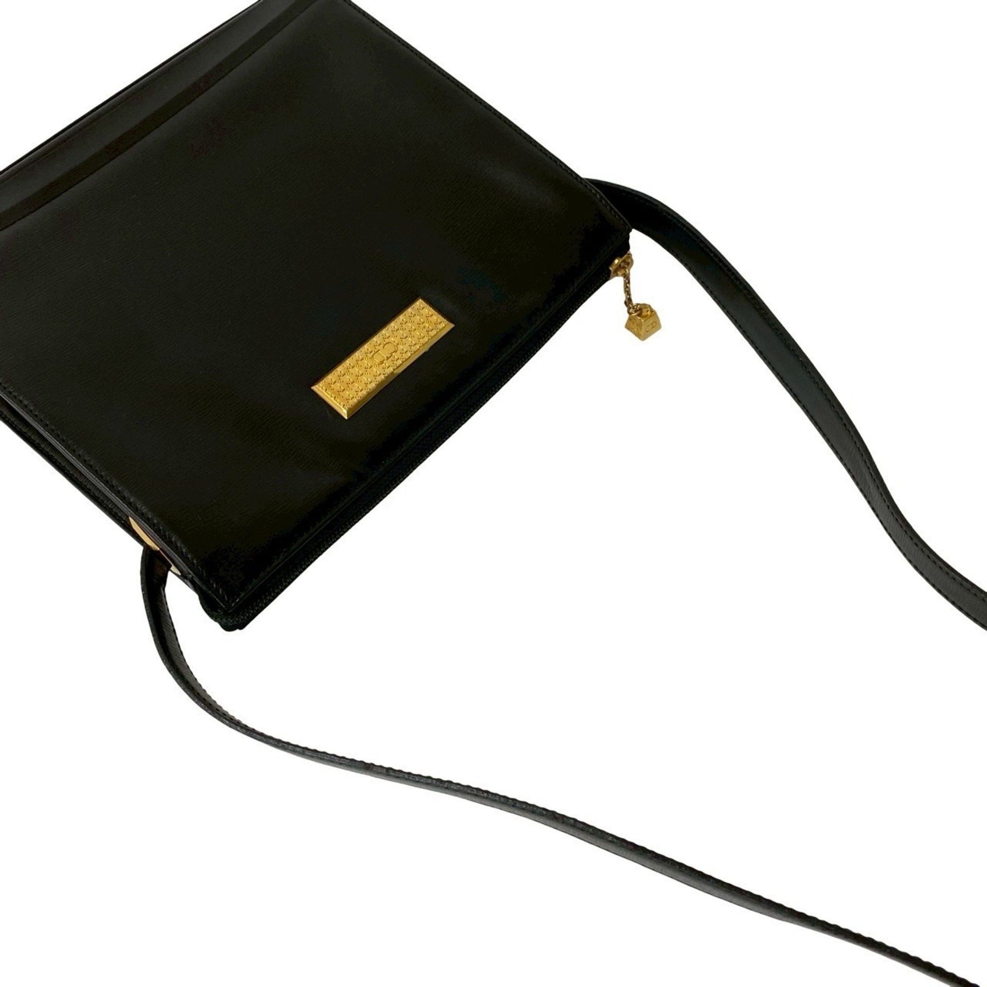 Christian Dior CD logo hardware genuine leather shoulder bag pochette black 39594