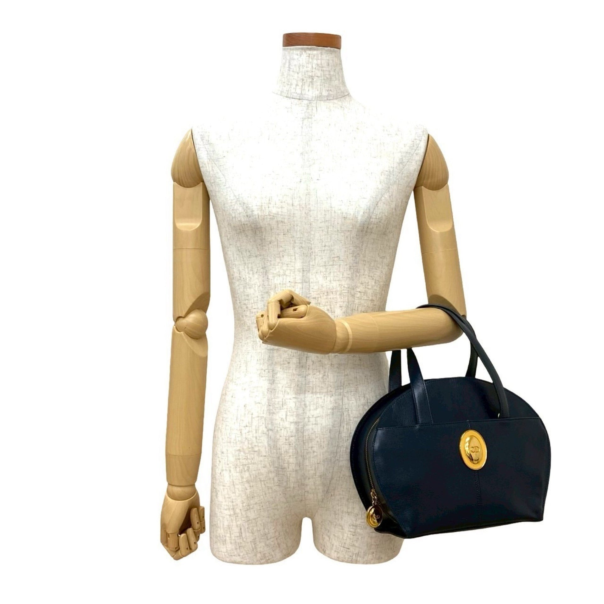 Christian Dior CD logo hardware leather genuine handbag Boston bag tote navy 31989
