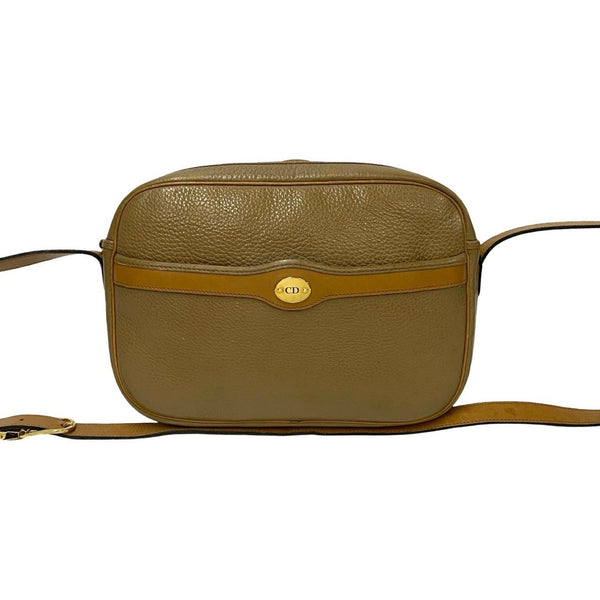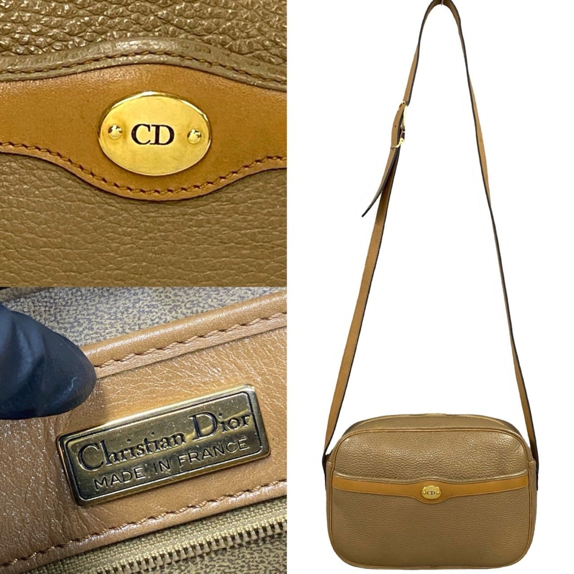 Christian Dior CD logo hardware leather genuine shoulder bag pochette sacoche brown 25839