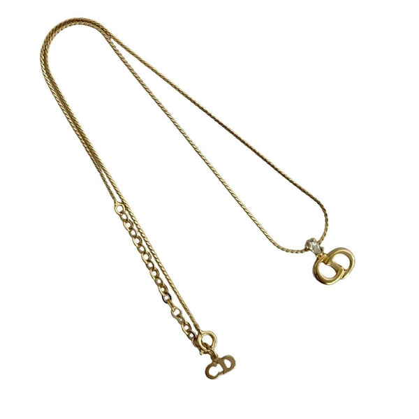 Christian Dior CD logo motif chain necklace pendant gold 641-3