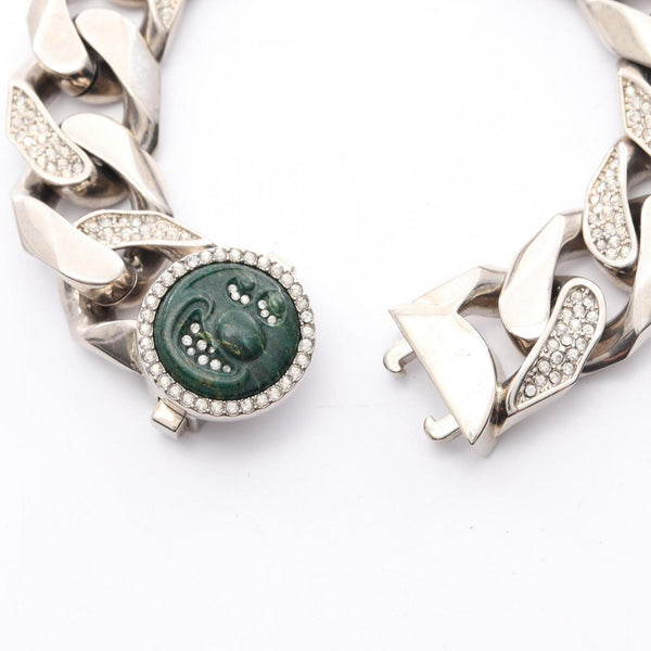 Christian Dior Dior Christian x Kenny Scharf Men\'s Stainless Steel Rhinestone Bracelet in Silver, Green, and Clear