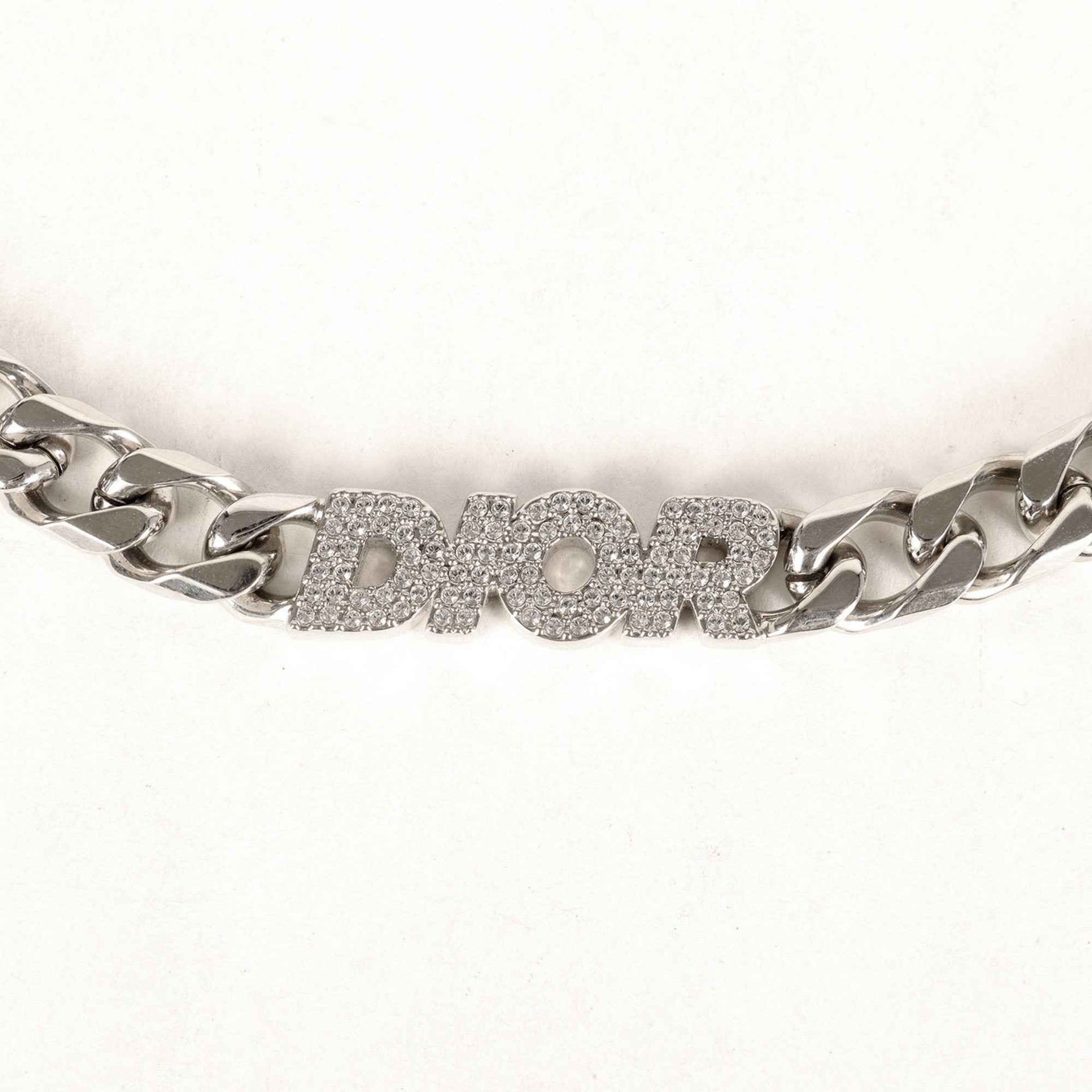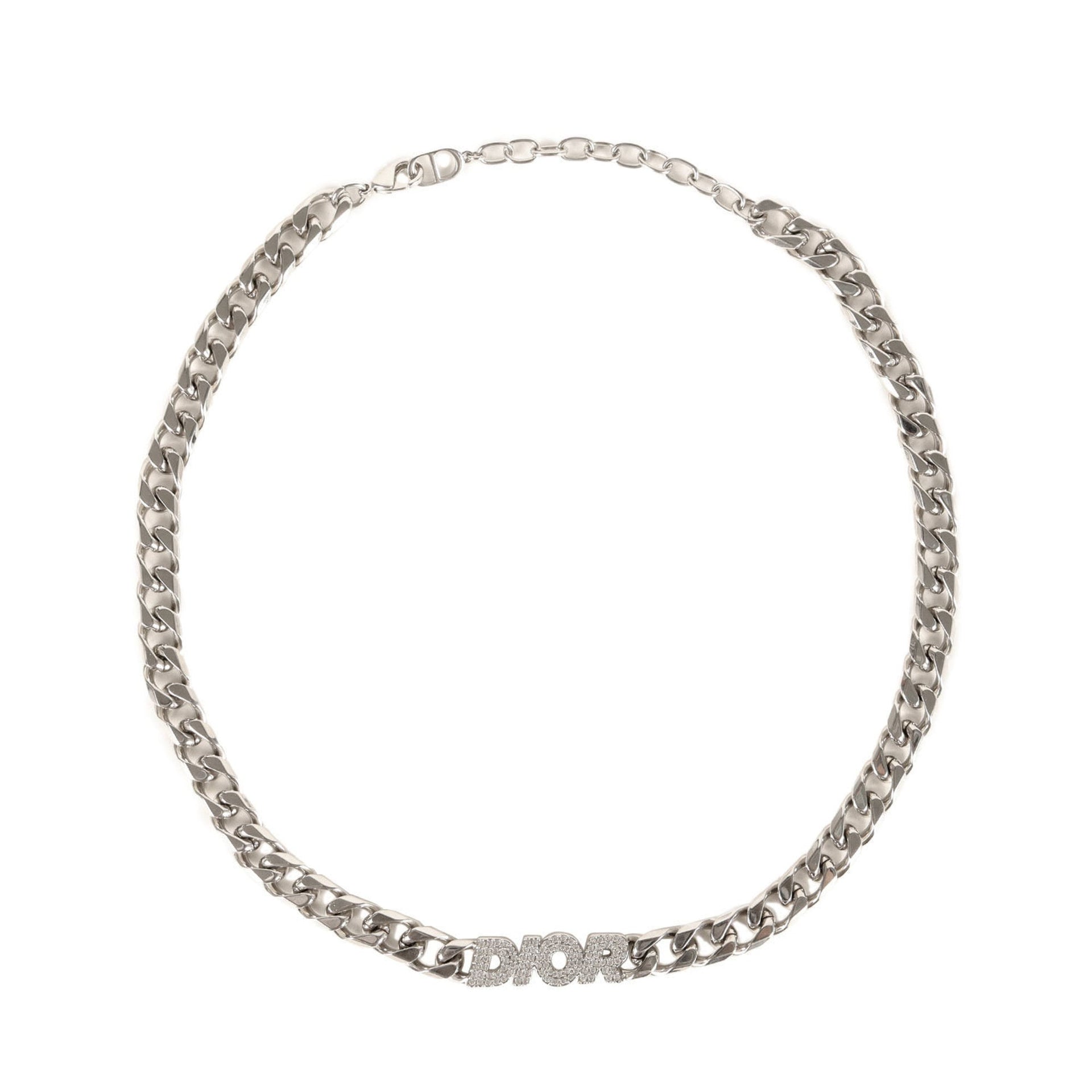 Christian Dior Dior Crystal Rhinestone Chain Link Necklace in Silver for Men