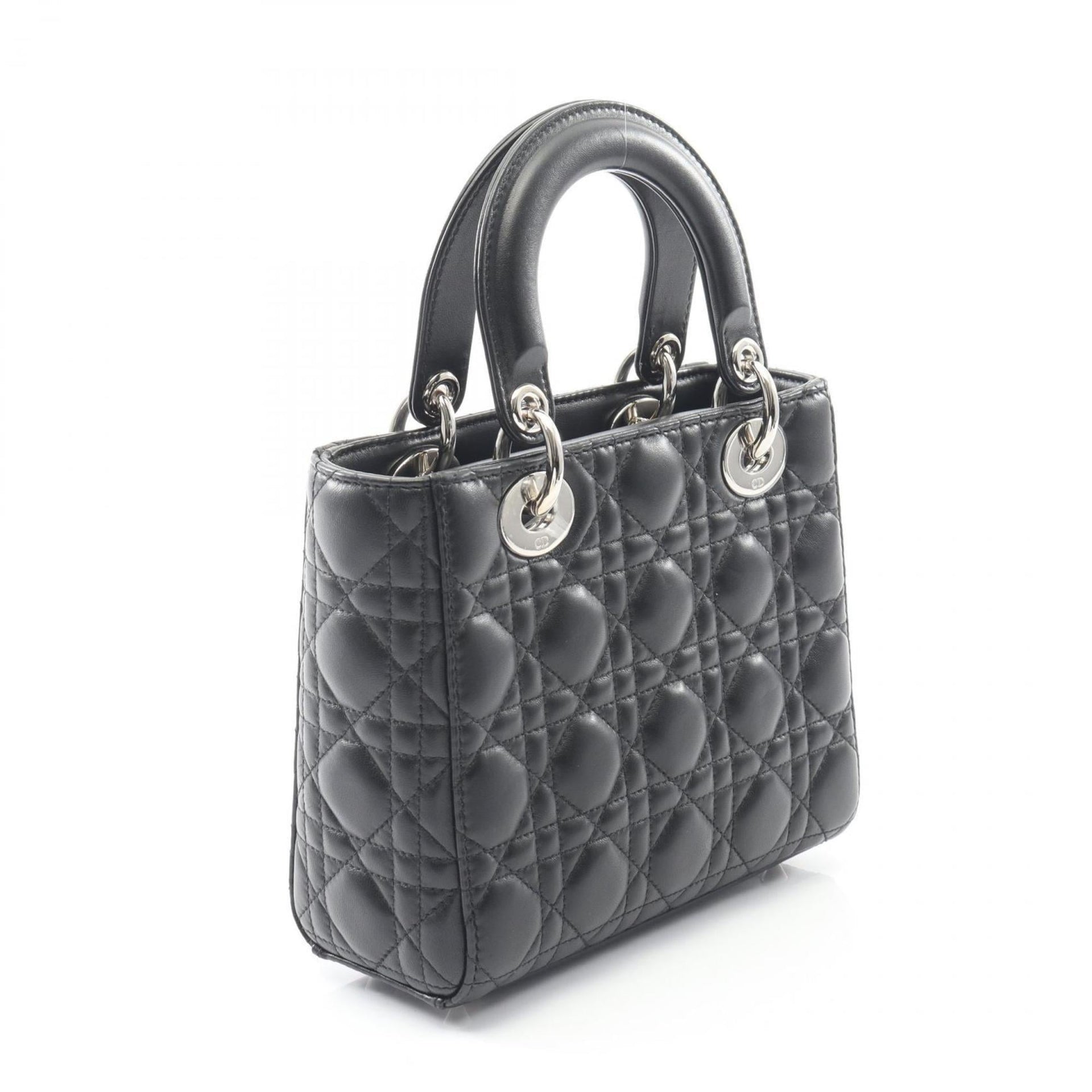 Christian Dior Dior LADY DIOR MY ABCDIOR Lady Small Cannage Handbag, Leather, Women\'s, Black, M0538PCAL