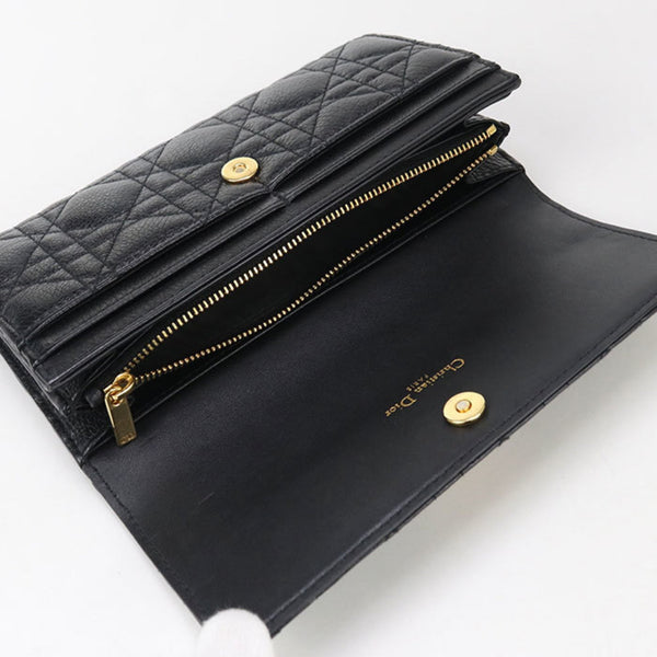 Christian Dior DIOR Long Wallet with Bi-fold Coin Pocket S5039 UWHC M900 Orchid Dior Caro Women\'s Black