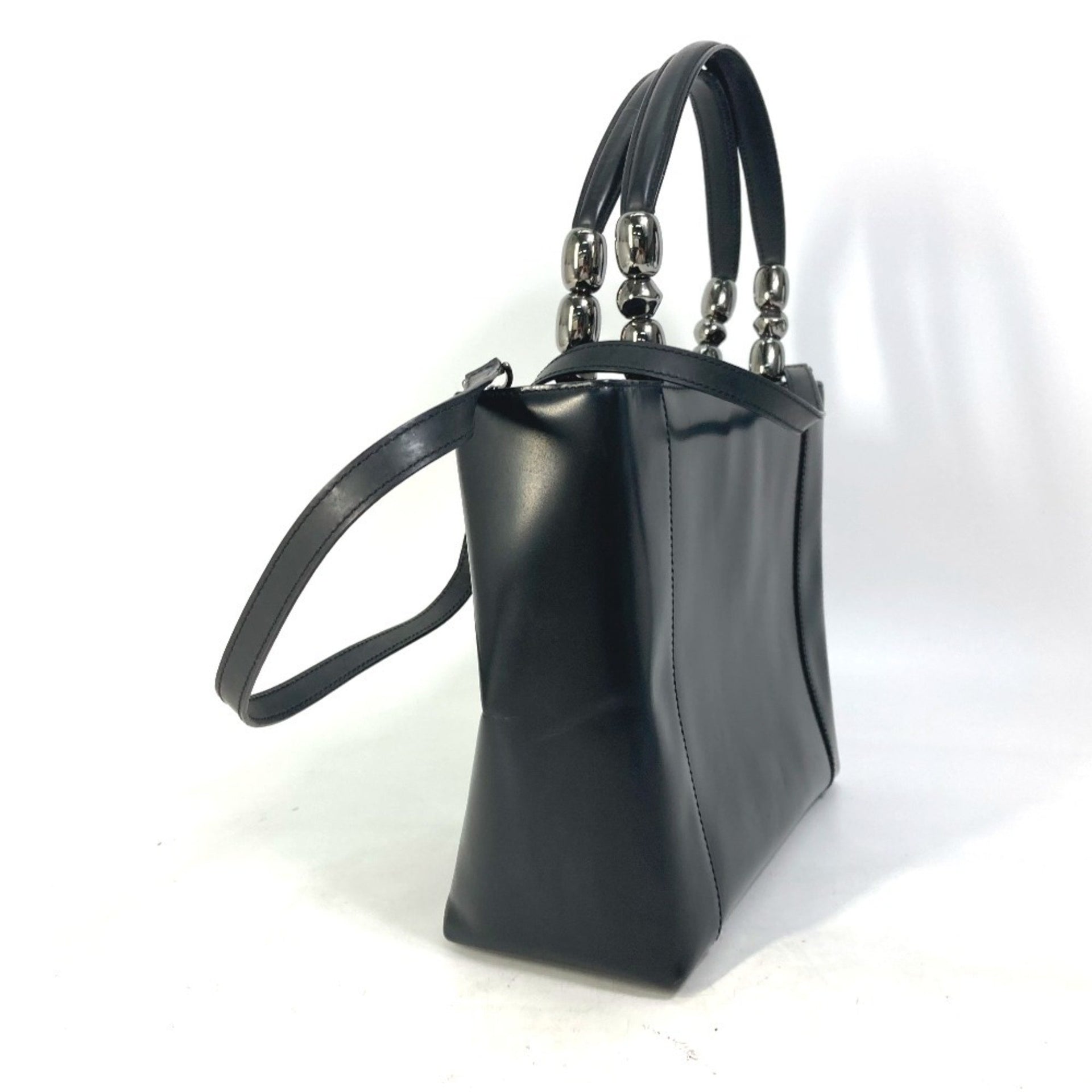 Christian Dior Dior Maris Pearl 2-Way Bag Shoulder Tote Handbag Leather Women\'s Black