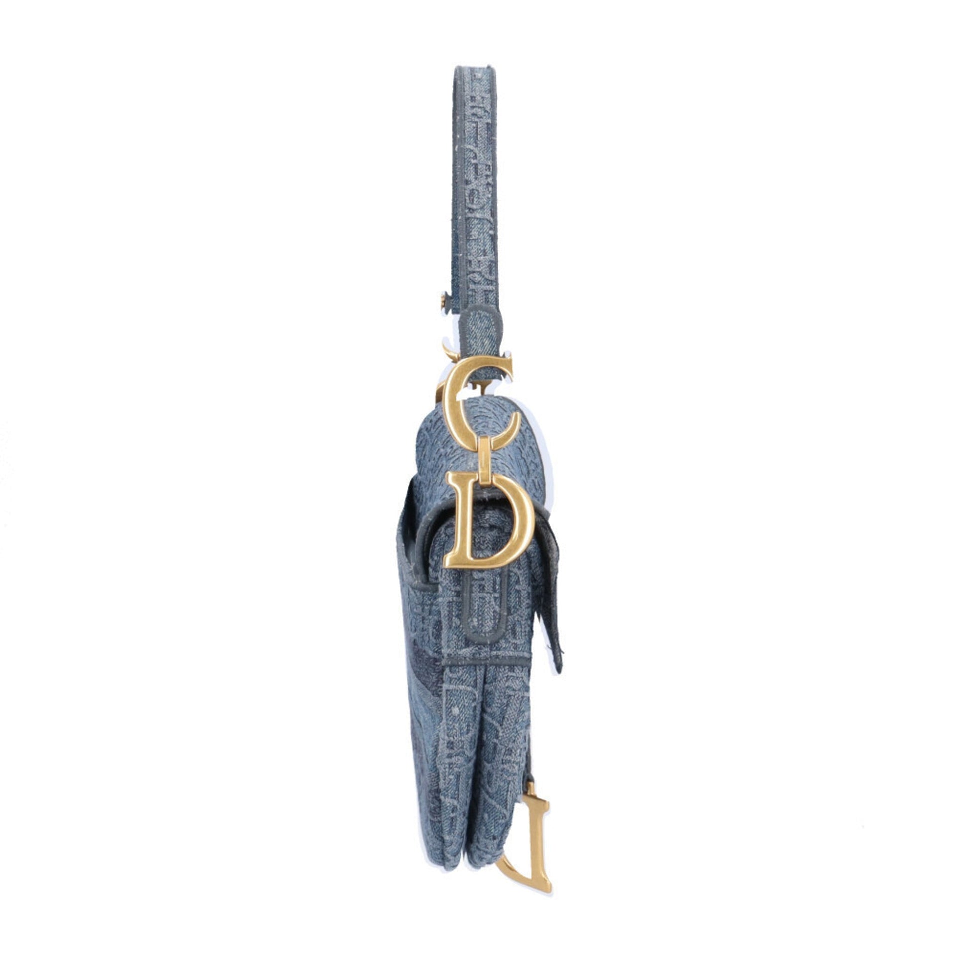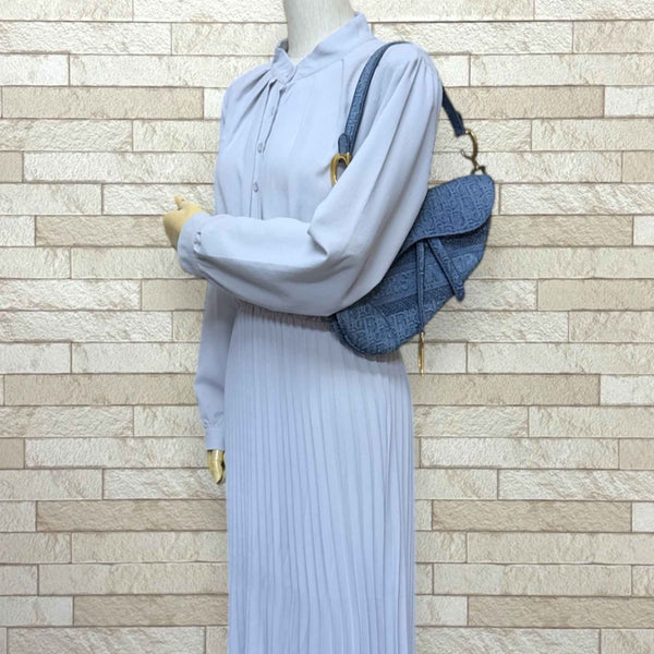 Christian Dior Dior Saddle Bag Oblique Shoulder Denim Blue Women\'s