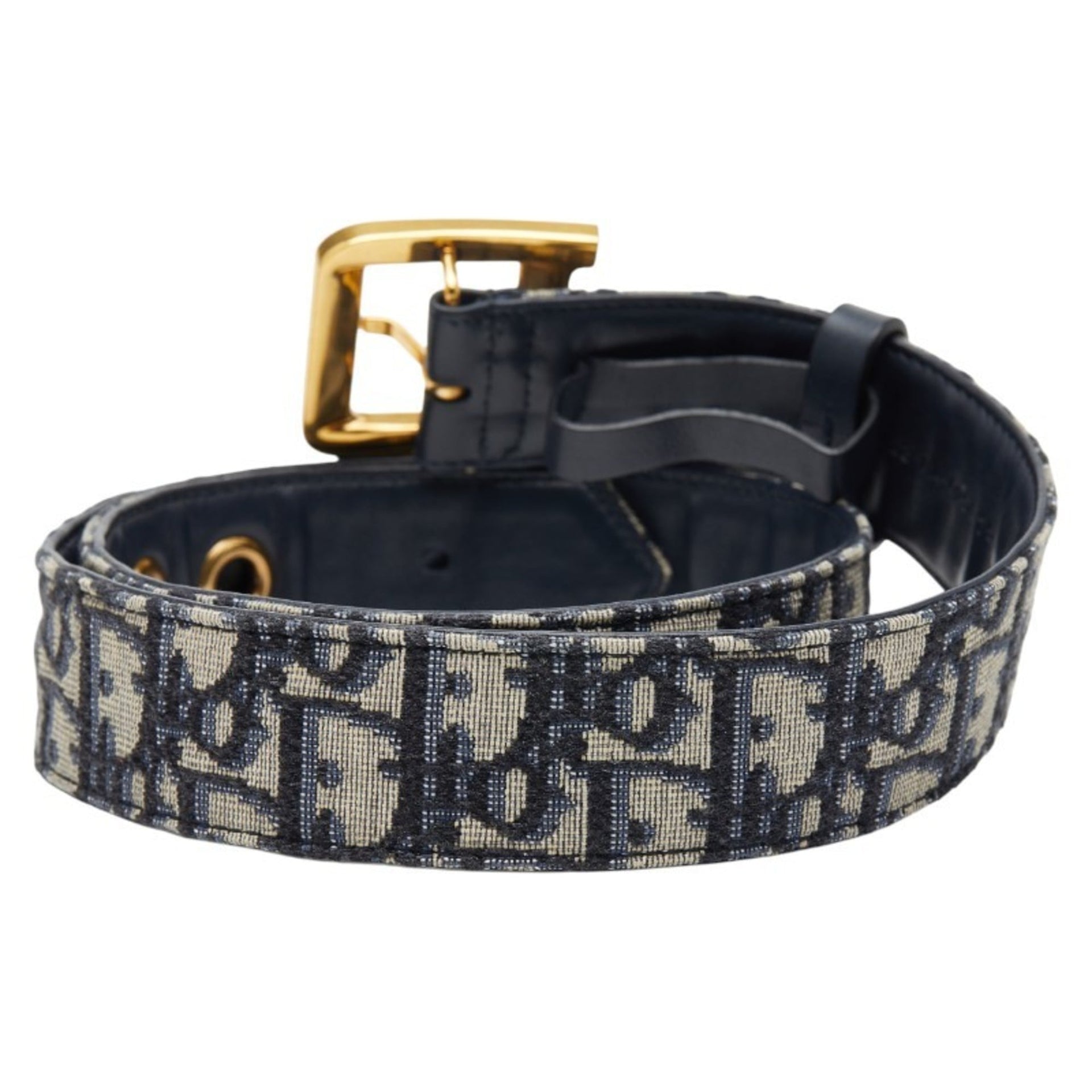 Christian Dior Dior Trotter Oblique Belt, Size 75, Beige, Navy, Canvas, Leather, Women\'s,