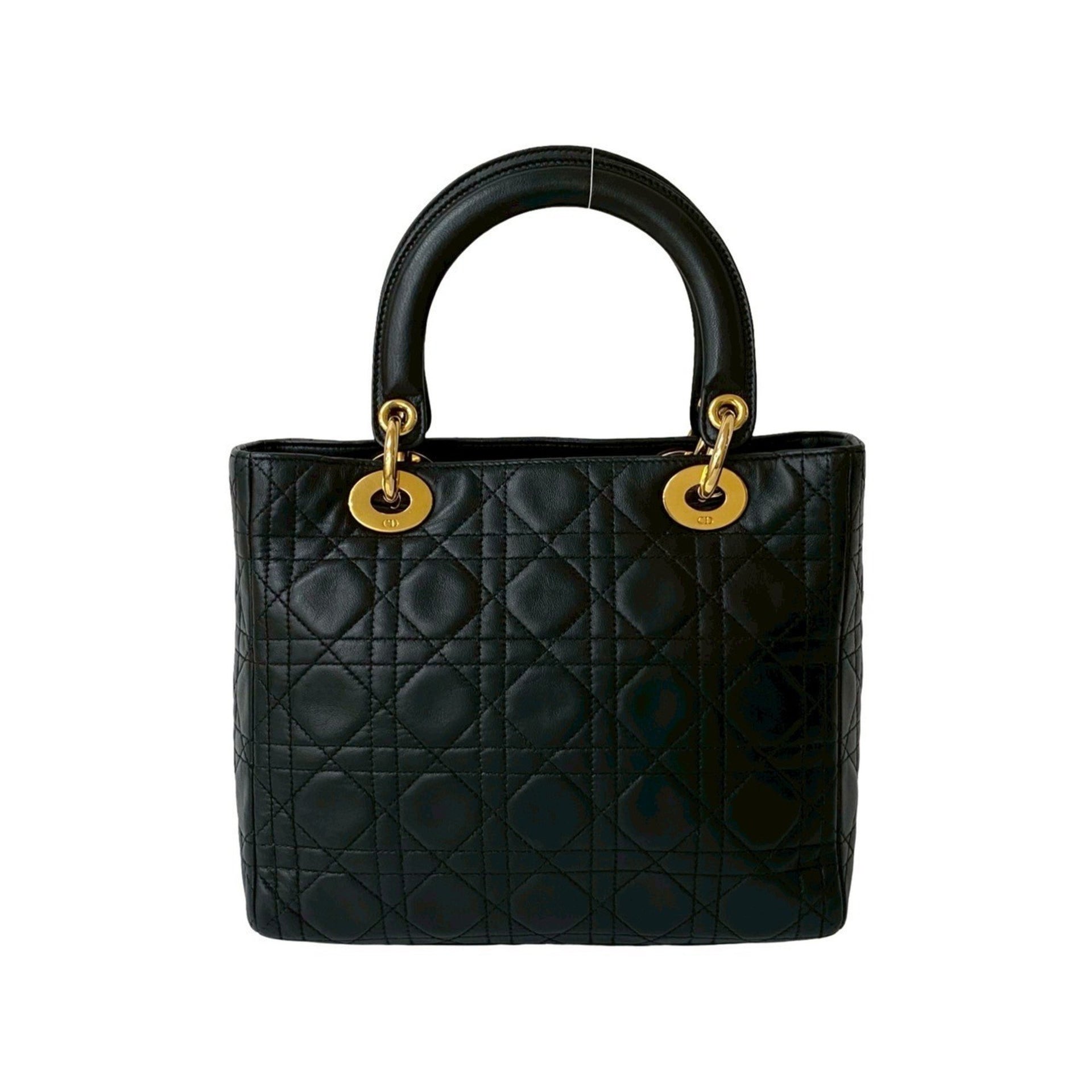 Christian Dior Lady Cannage Stitched Leather Handbag/Mini Tote Bag in Black (l53-2)