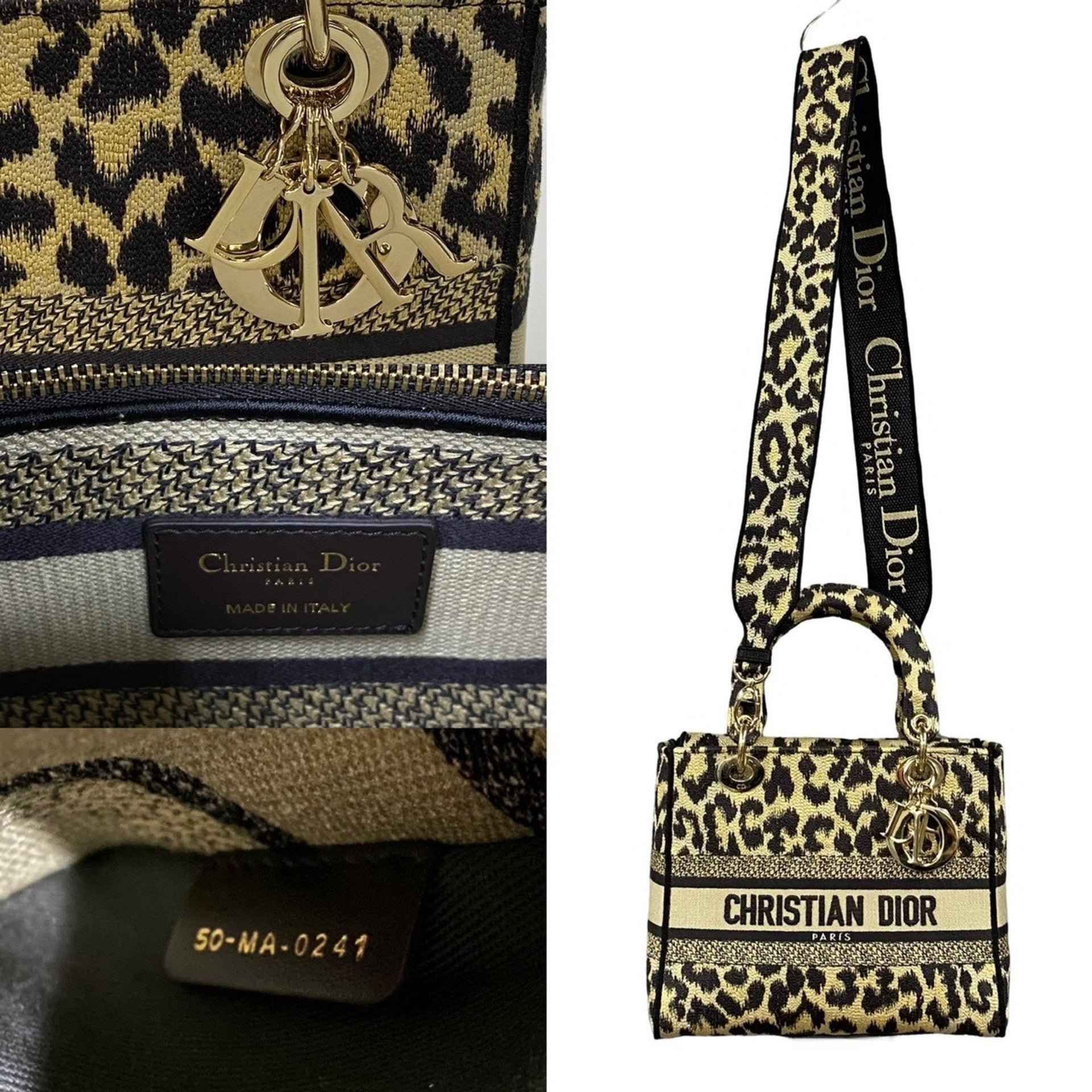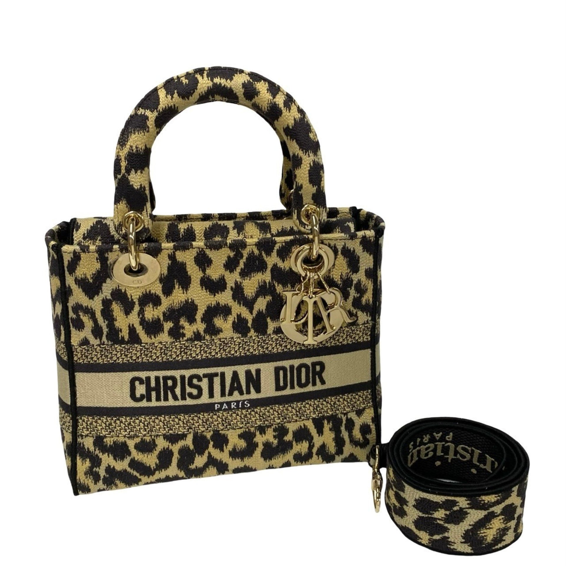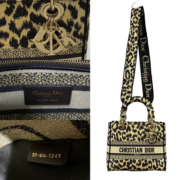 Christian Dior Lady D-Lite Medium Canvas 2-Way Leopard Print Handbag/Shoulder Bag (d39-5)
