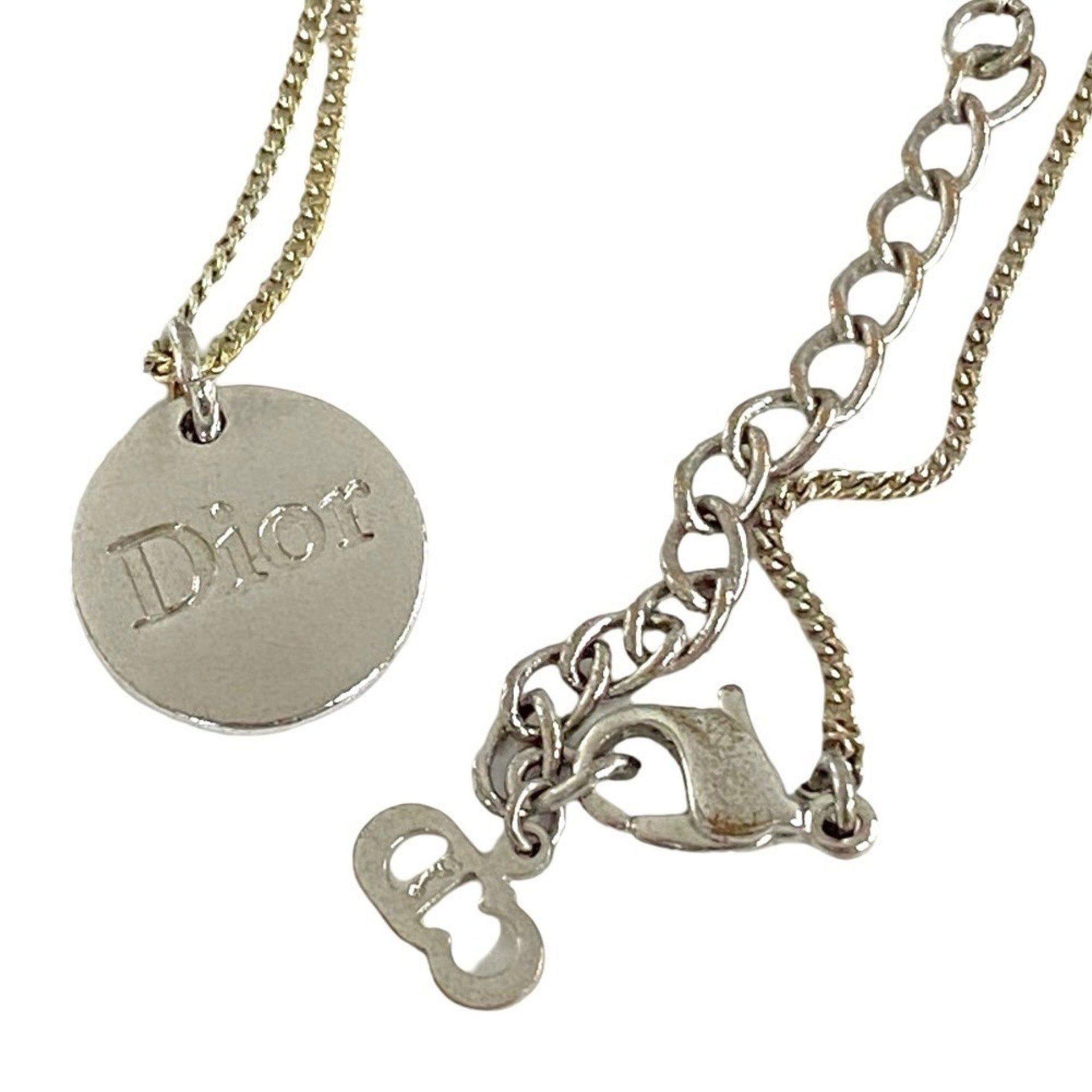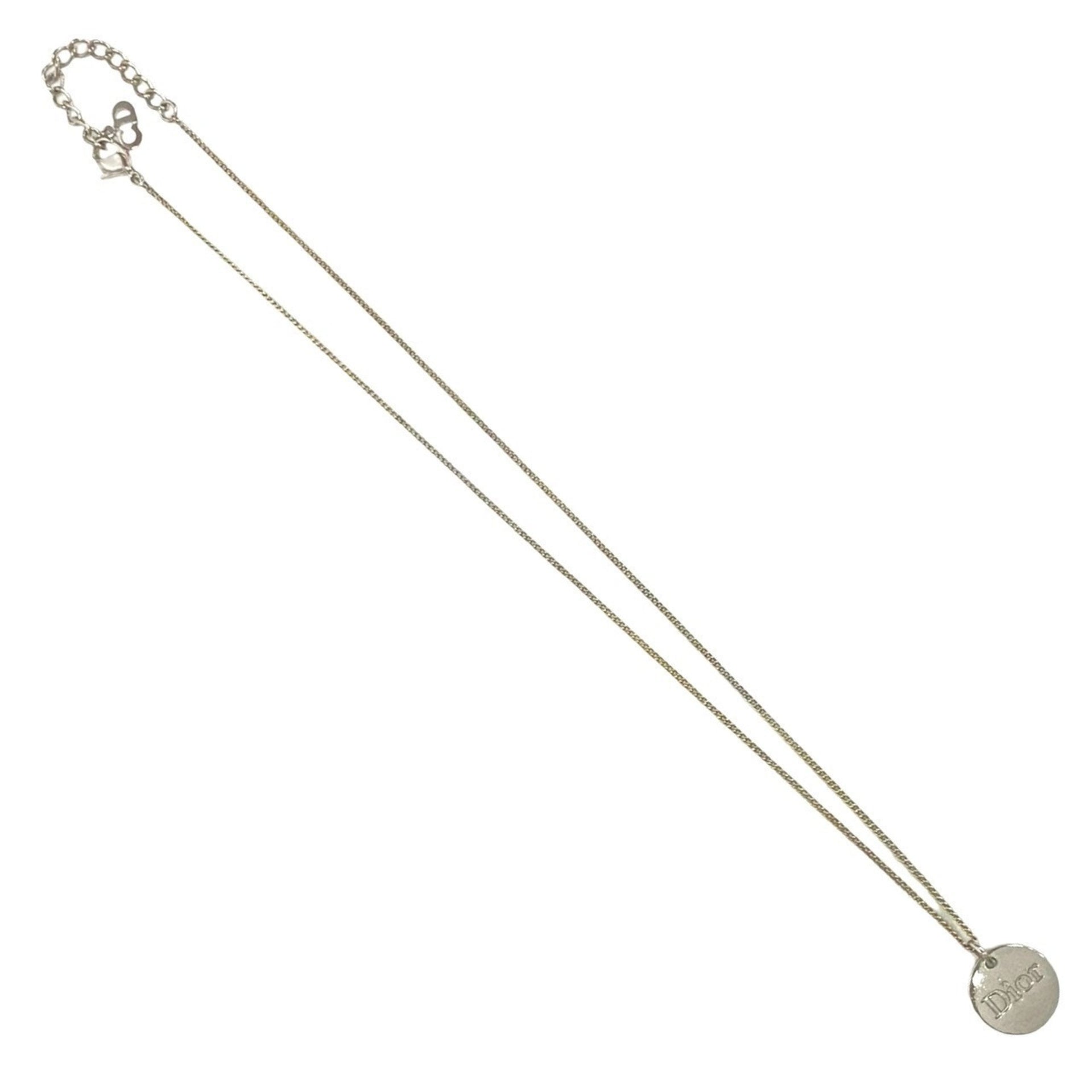 Christian Dior logo engraved motif circle silver plated necklace pendant 290-2