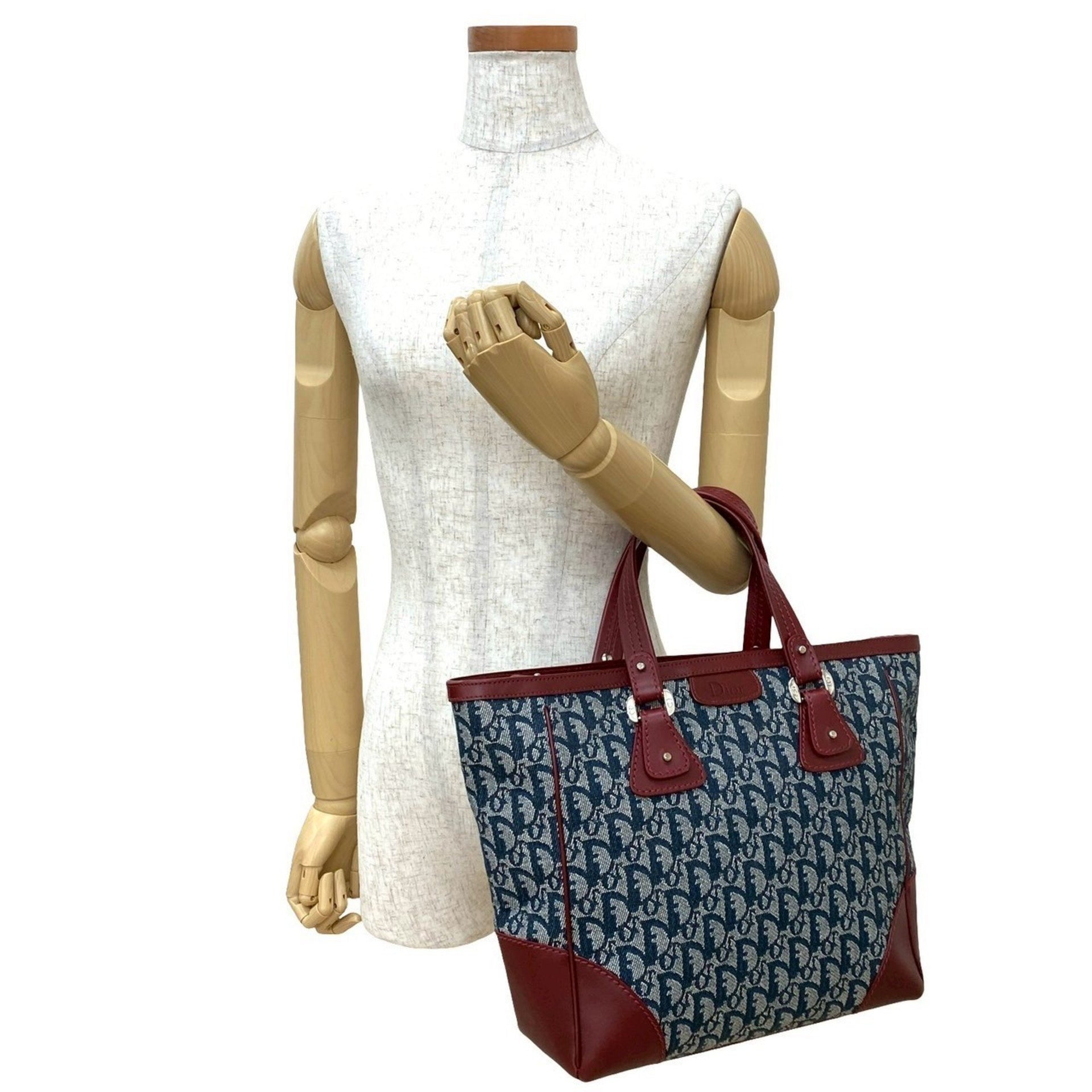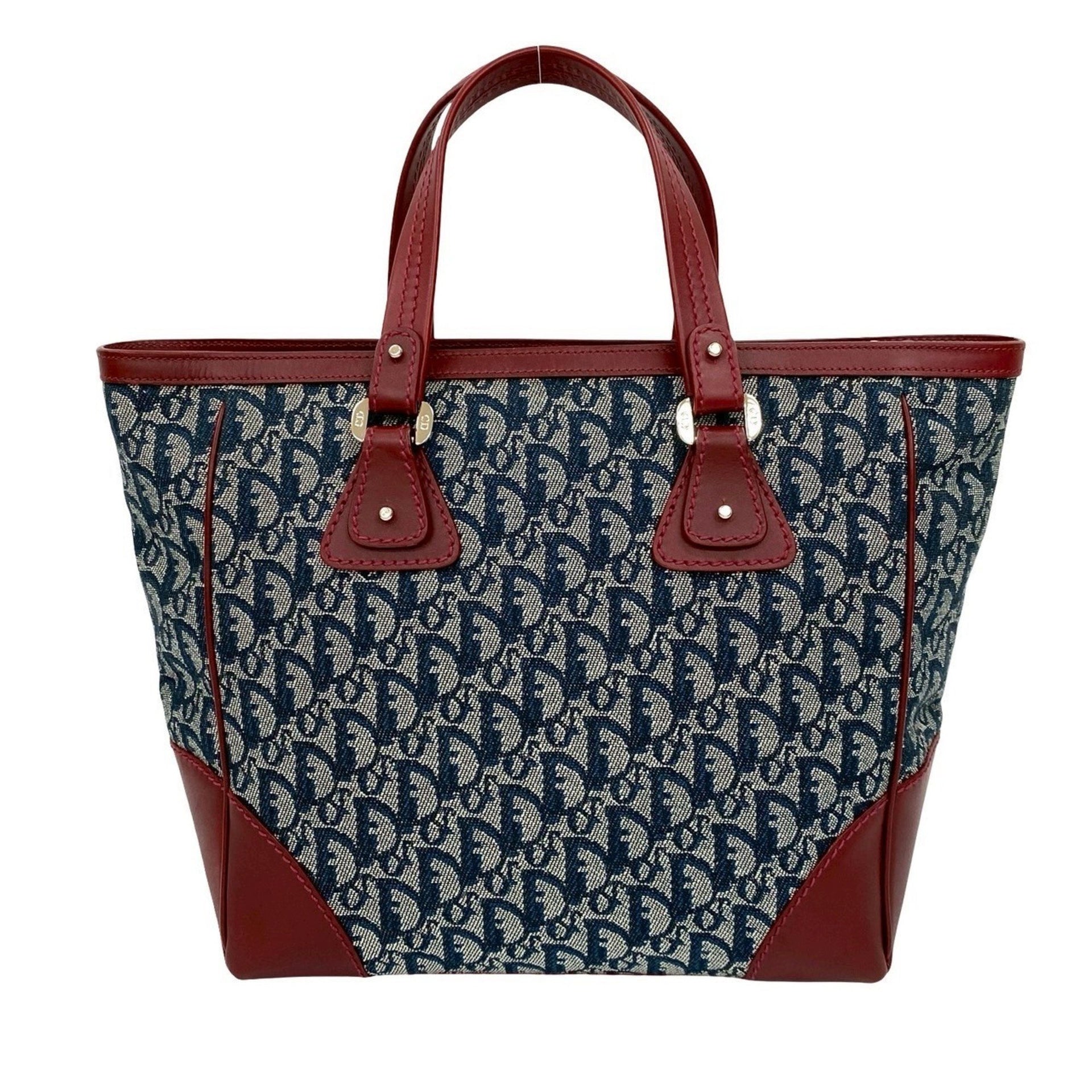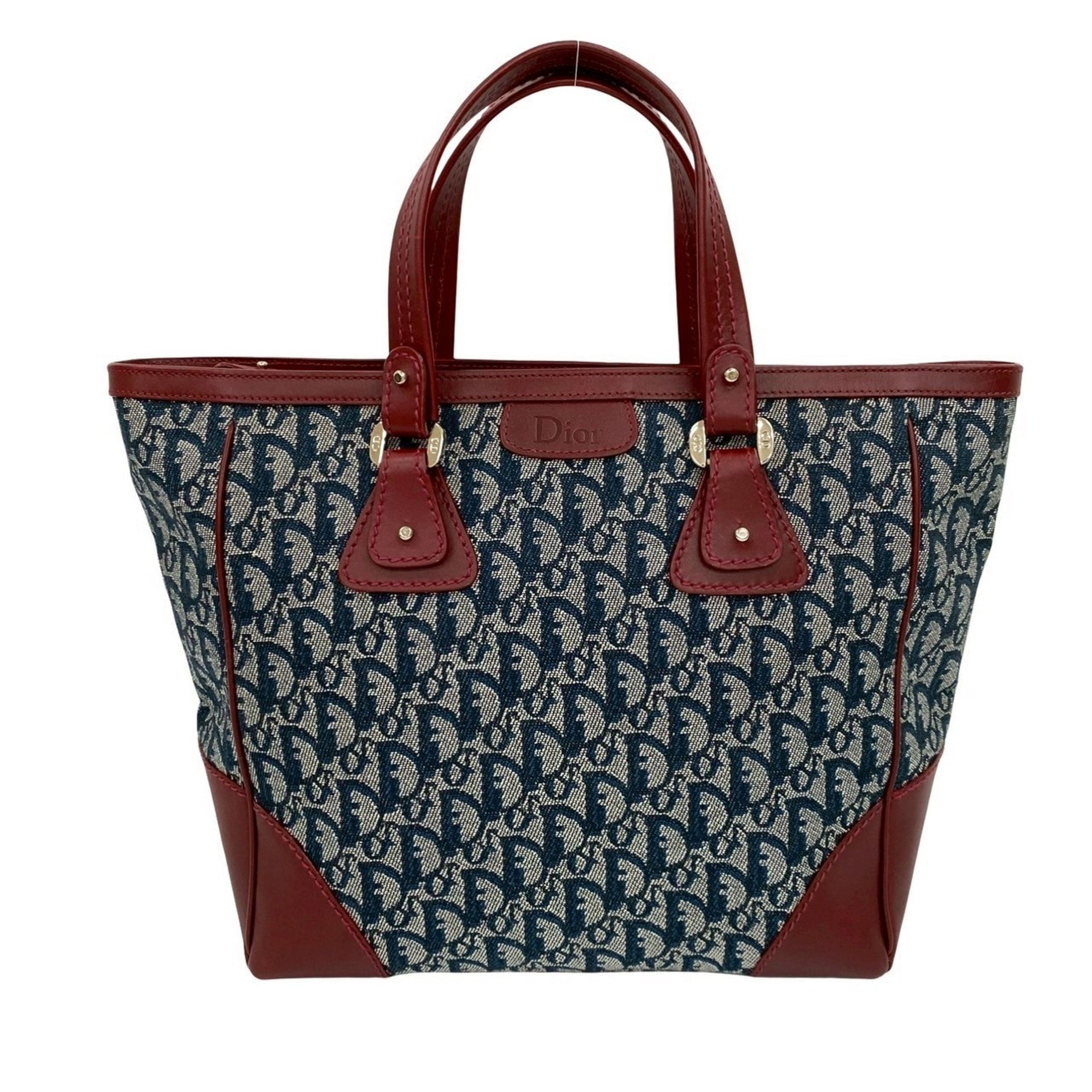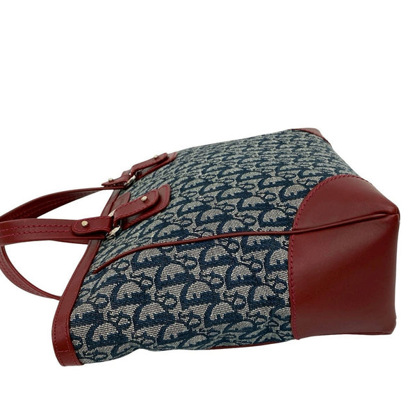 Christian Dior Logo Trotter Pattern Canvas Leather Handbag Tote Bag in Bordeaux and Navy (Product Code: 27347)