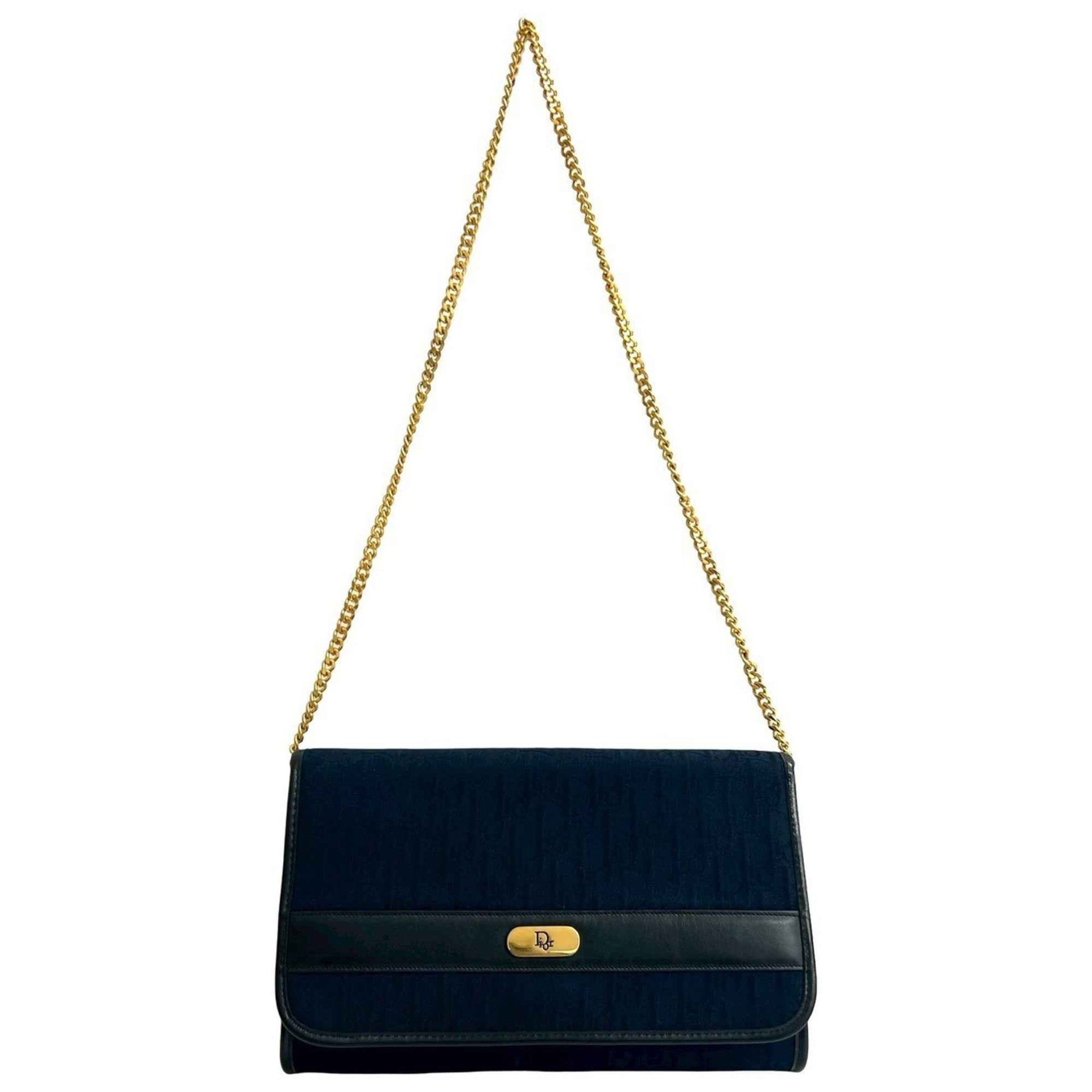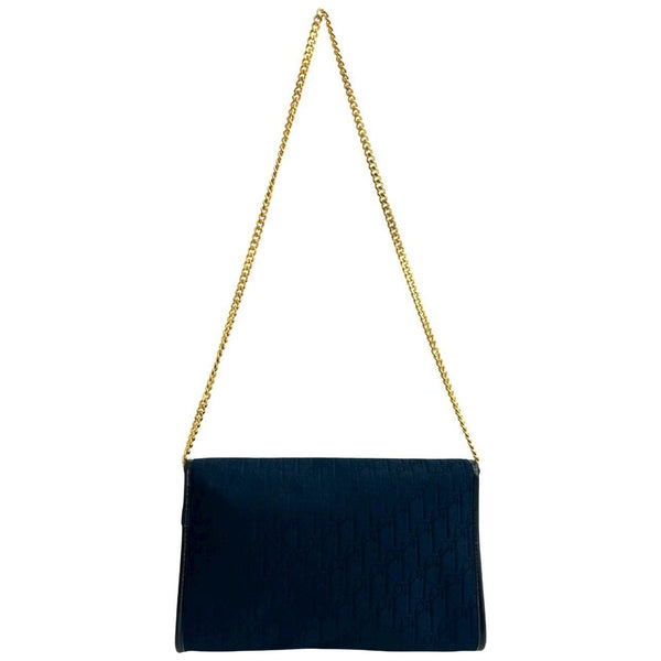 Christian Dior Logo Trotter Pattern Leather Canvas Shoulder Bag Navy 52350