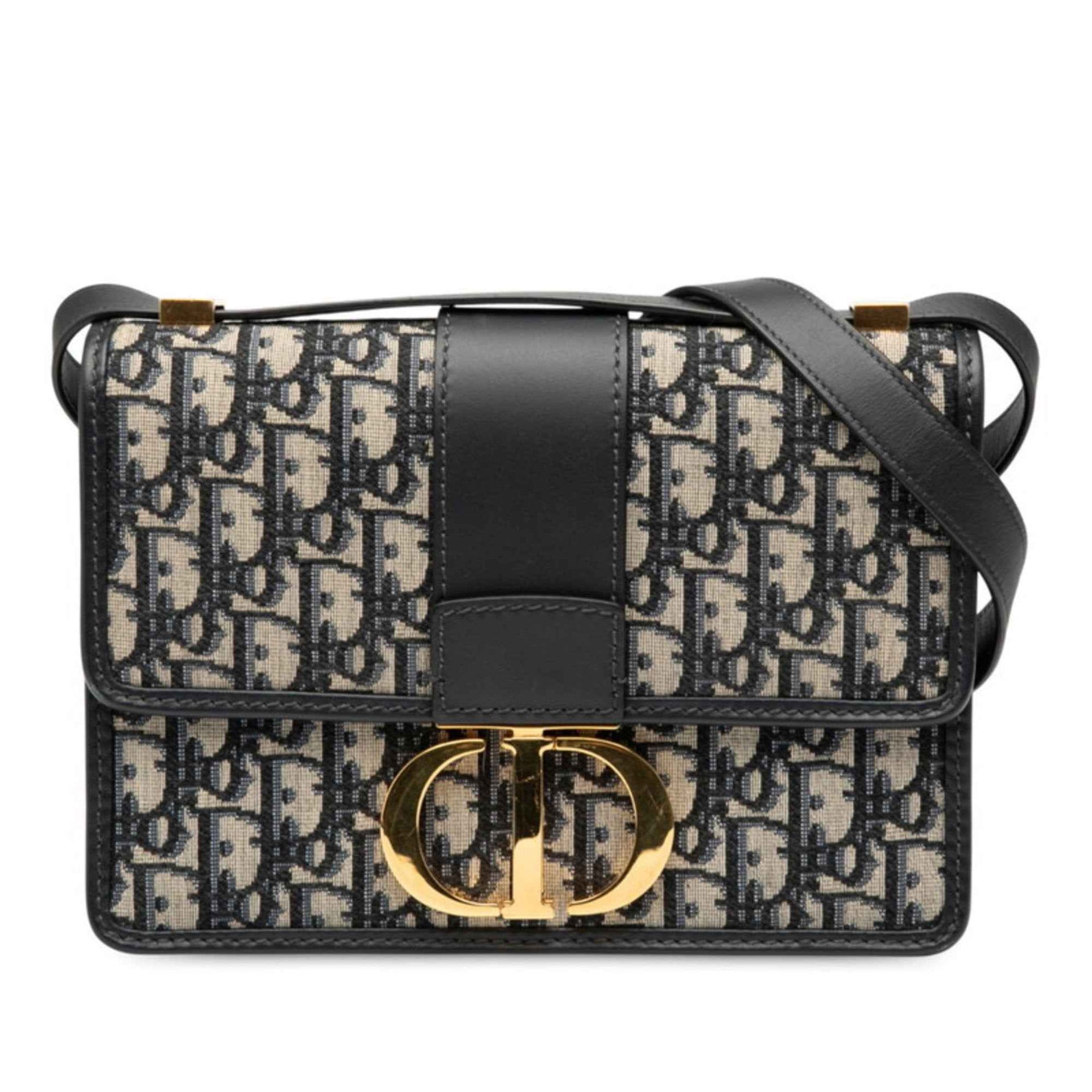 Christian Dior Oblique 30 Montaigne Shoulder Bag, Navy and Beige Canvas Leather, Women\'s,
