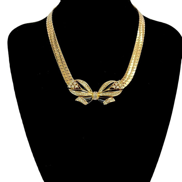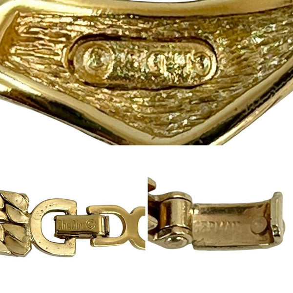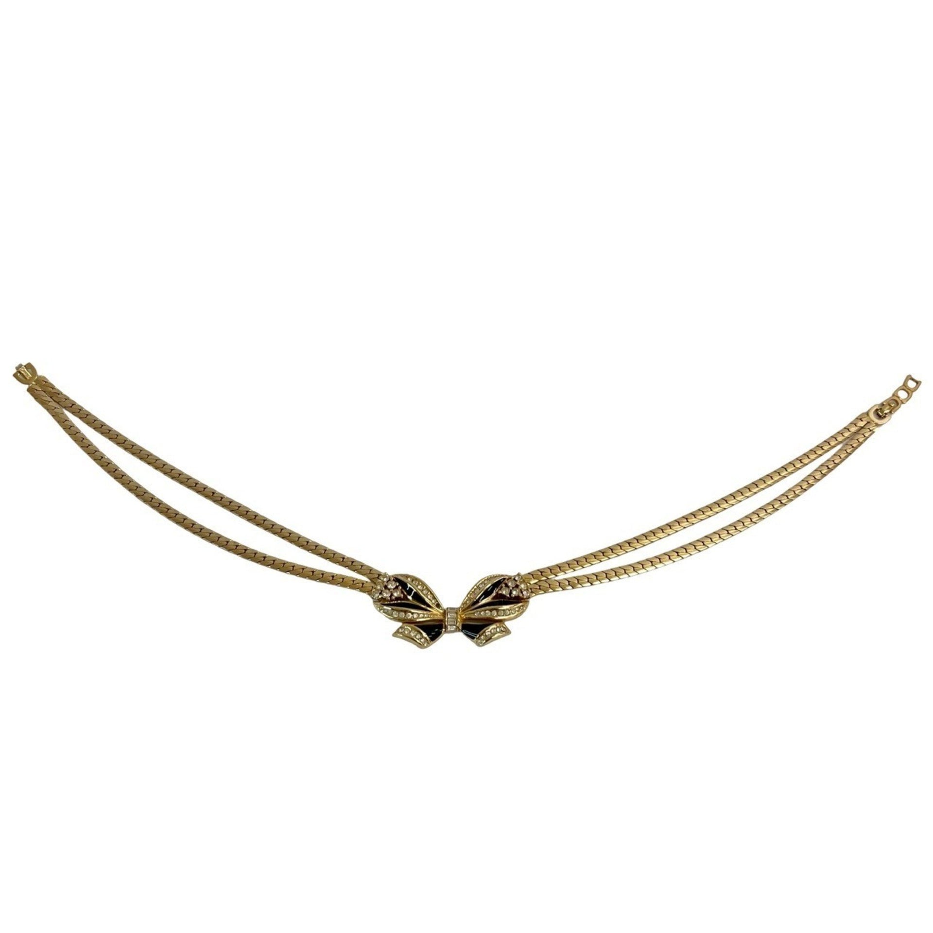 Christian Dior Ribbon Motif Rhinestone GP Choker Necklace Gold 1190h