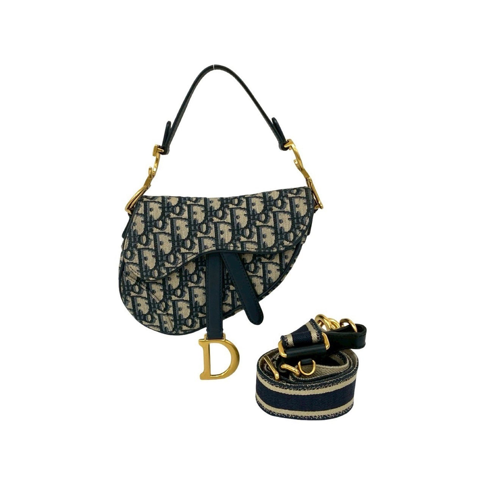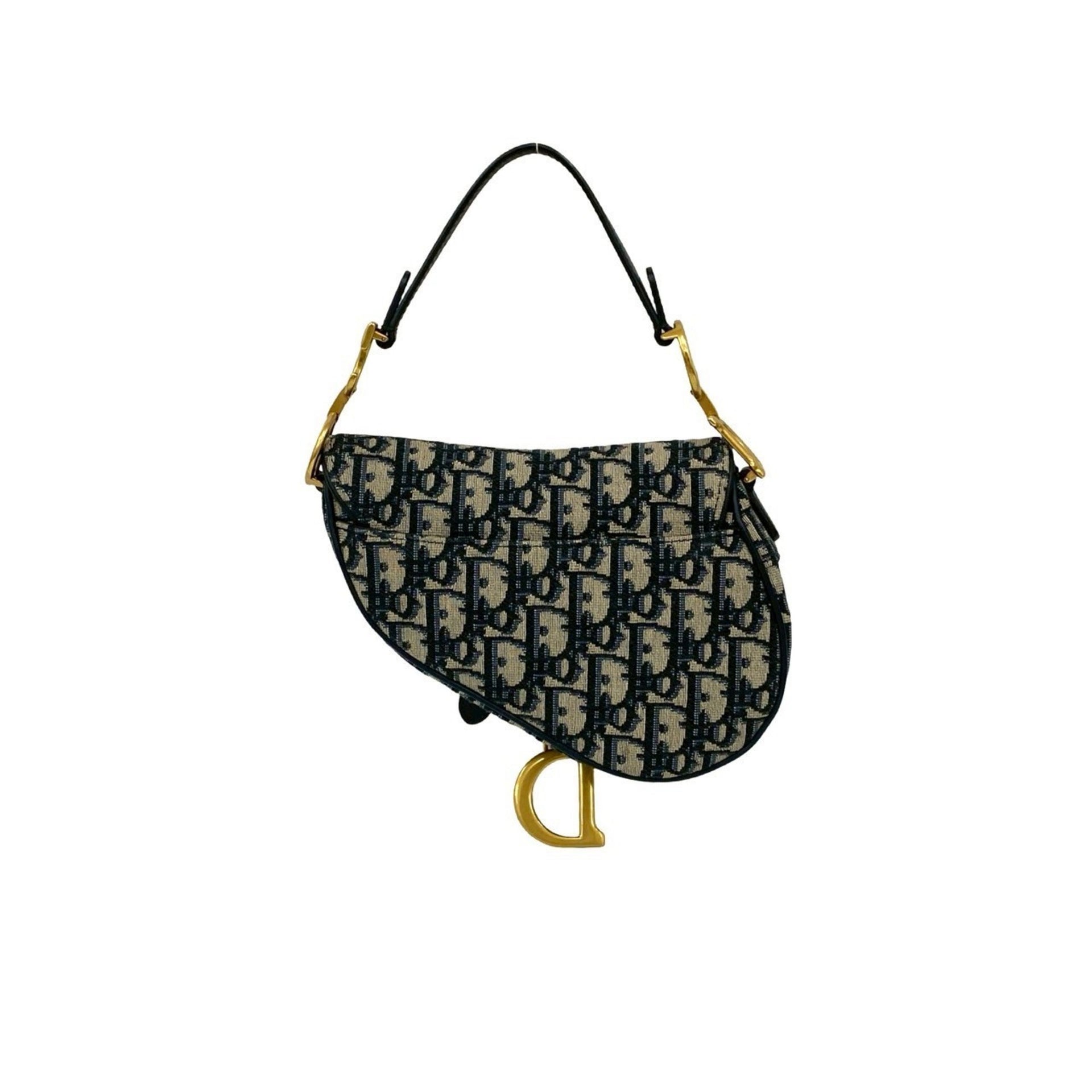 Christian Dior Saddle Bag, Trotter Pattern, Leather and Canvas, 2-Way Handbag/Shoulder Navy, 13183