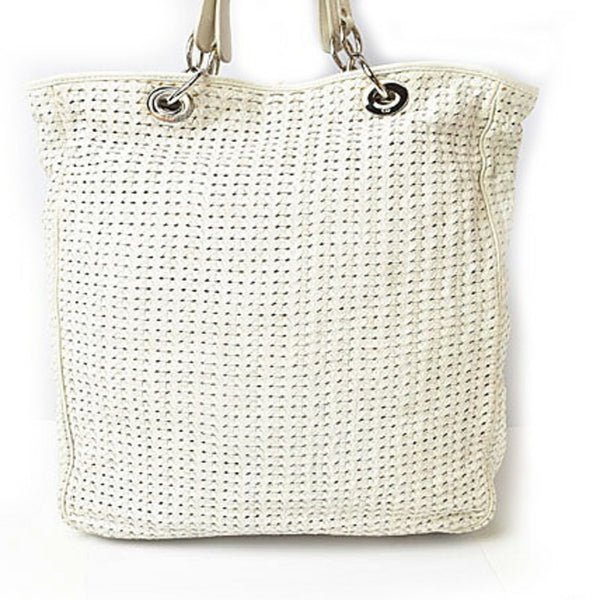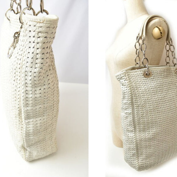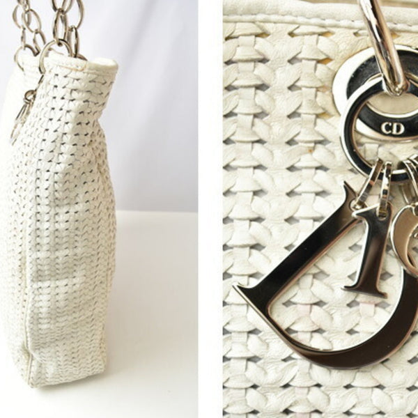 Christian Dior Tote Bag Lady Intrecciato White Silver