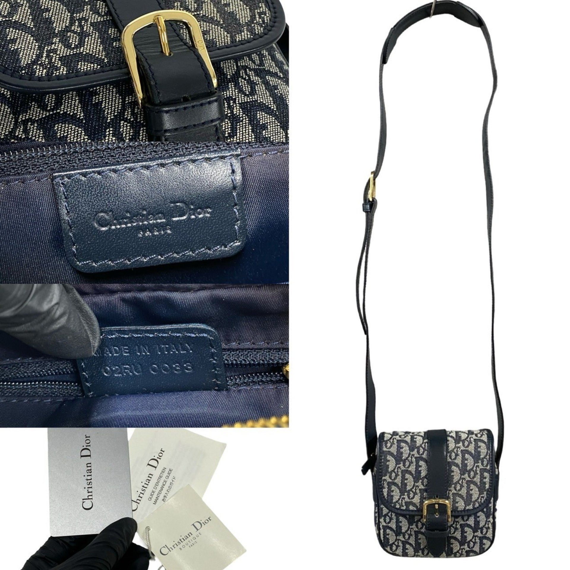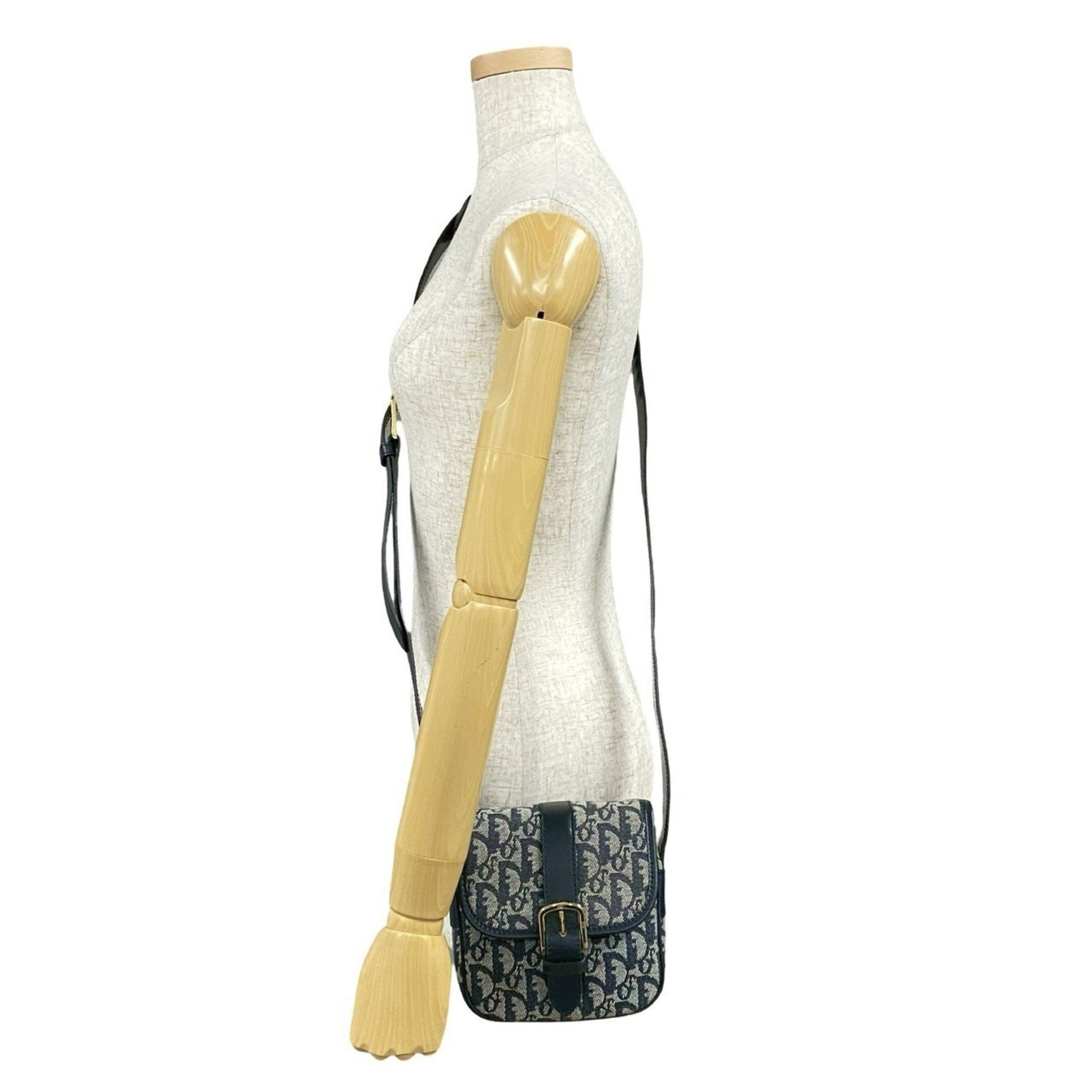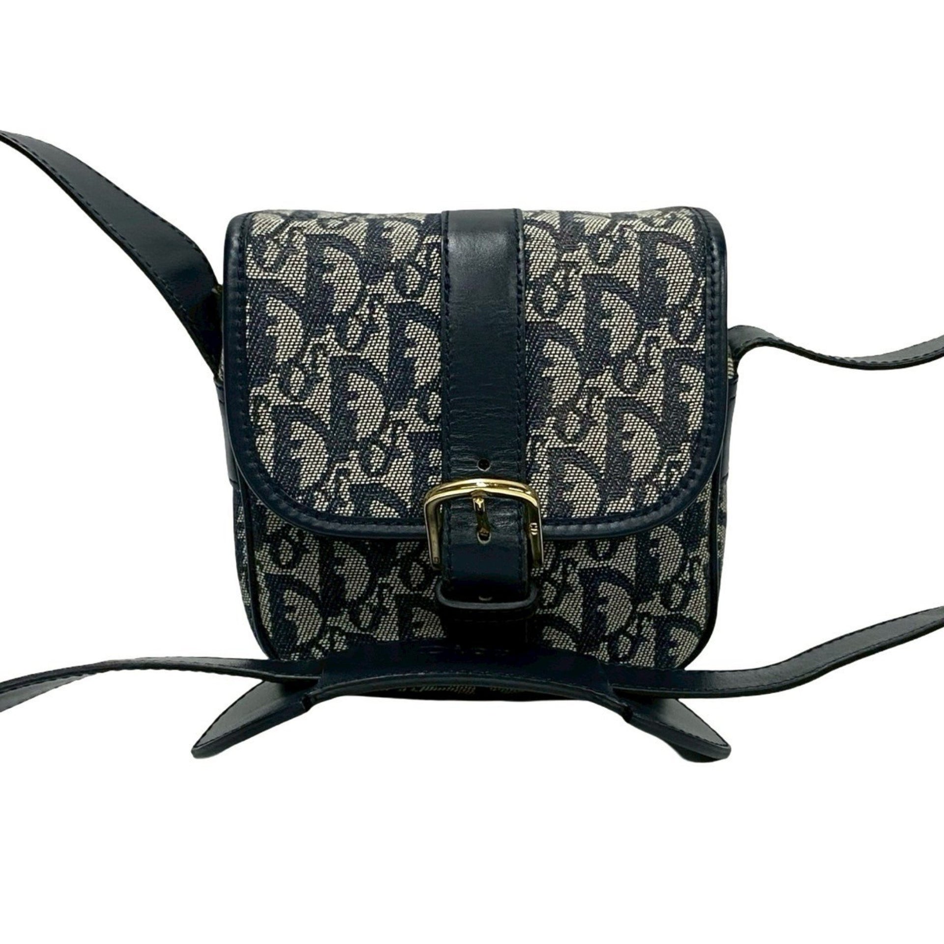 Christian Dior Trotter Pattern Leather Canvas Shoulder Bag Pochette Navy 34211