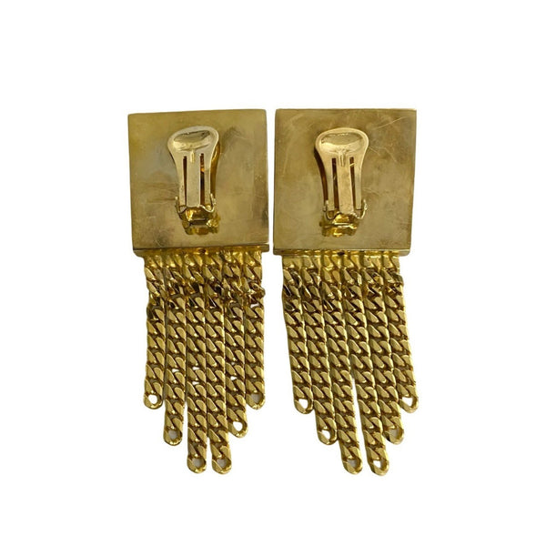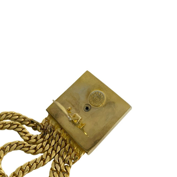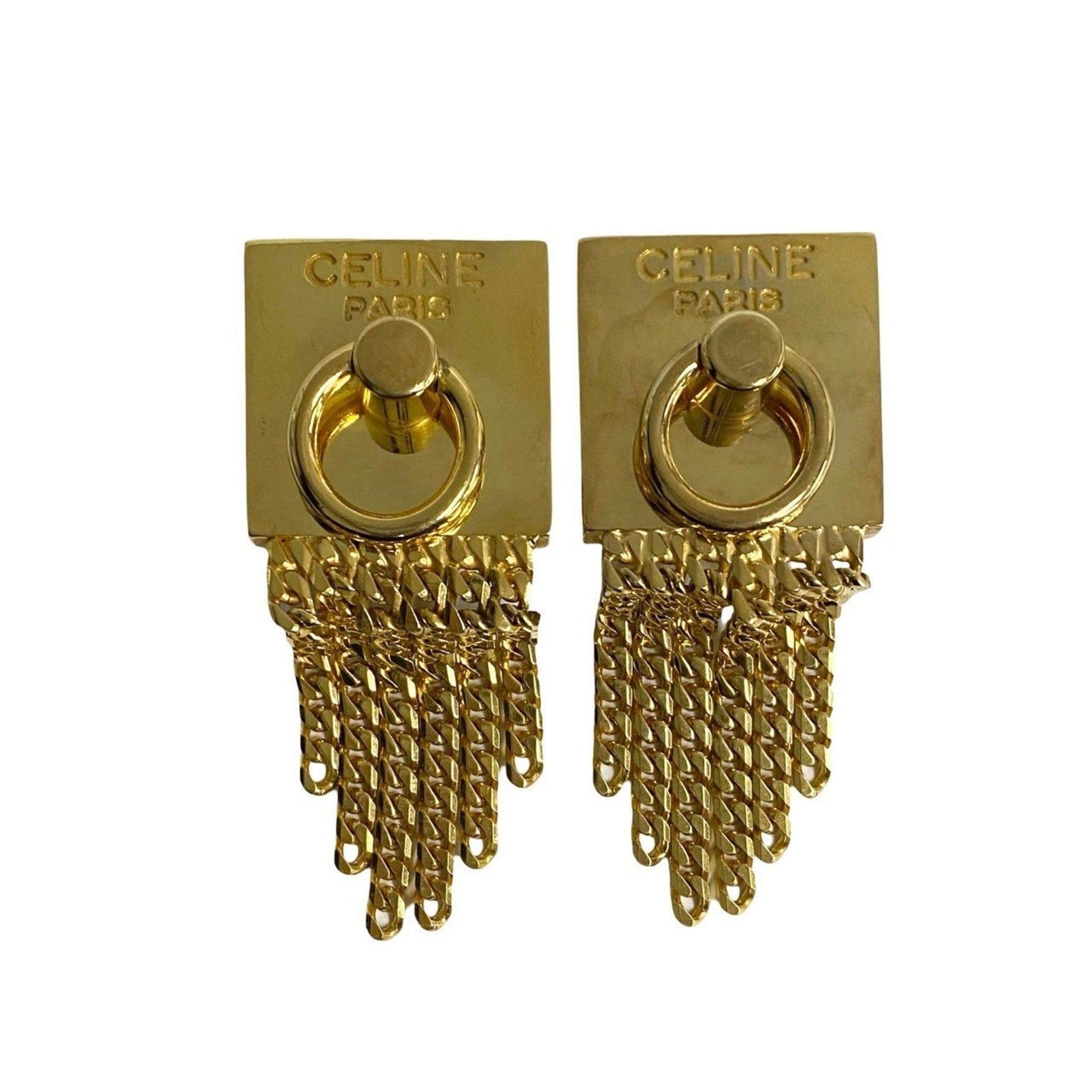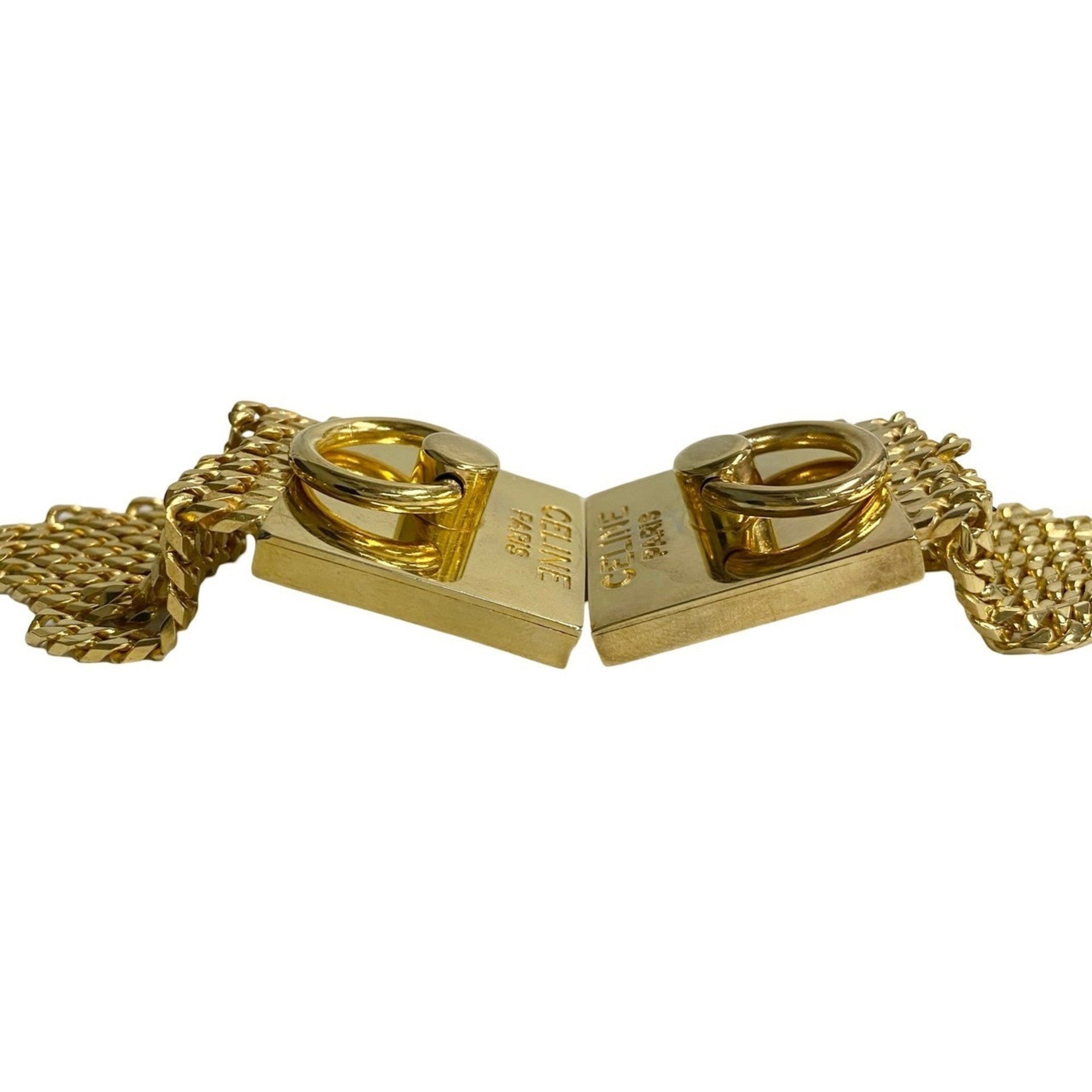 CELINE Earrings with Logo Ring and Metal Motif, Chain Earrings, Ear Cuff, Gold, 48315