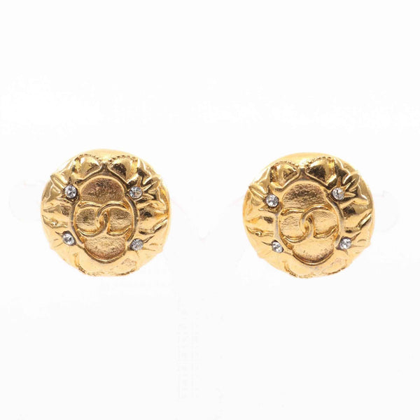 CHANEL Coco Mark Earrings GP (Gold Plated) Rhinestones Women\'s Gold Clear