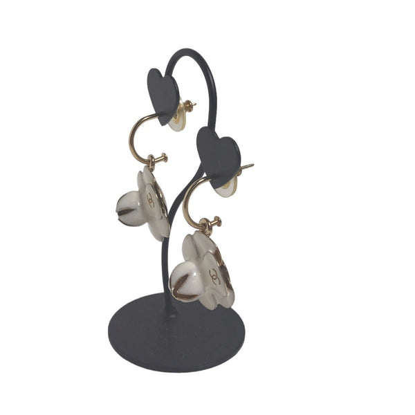 CHANEL Hoop Earrings Coco Mark 02P Camellia Chanel White/Gold