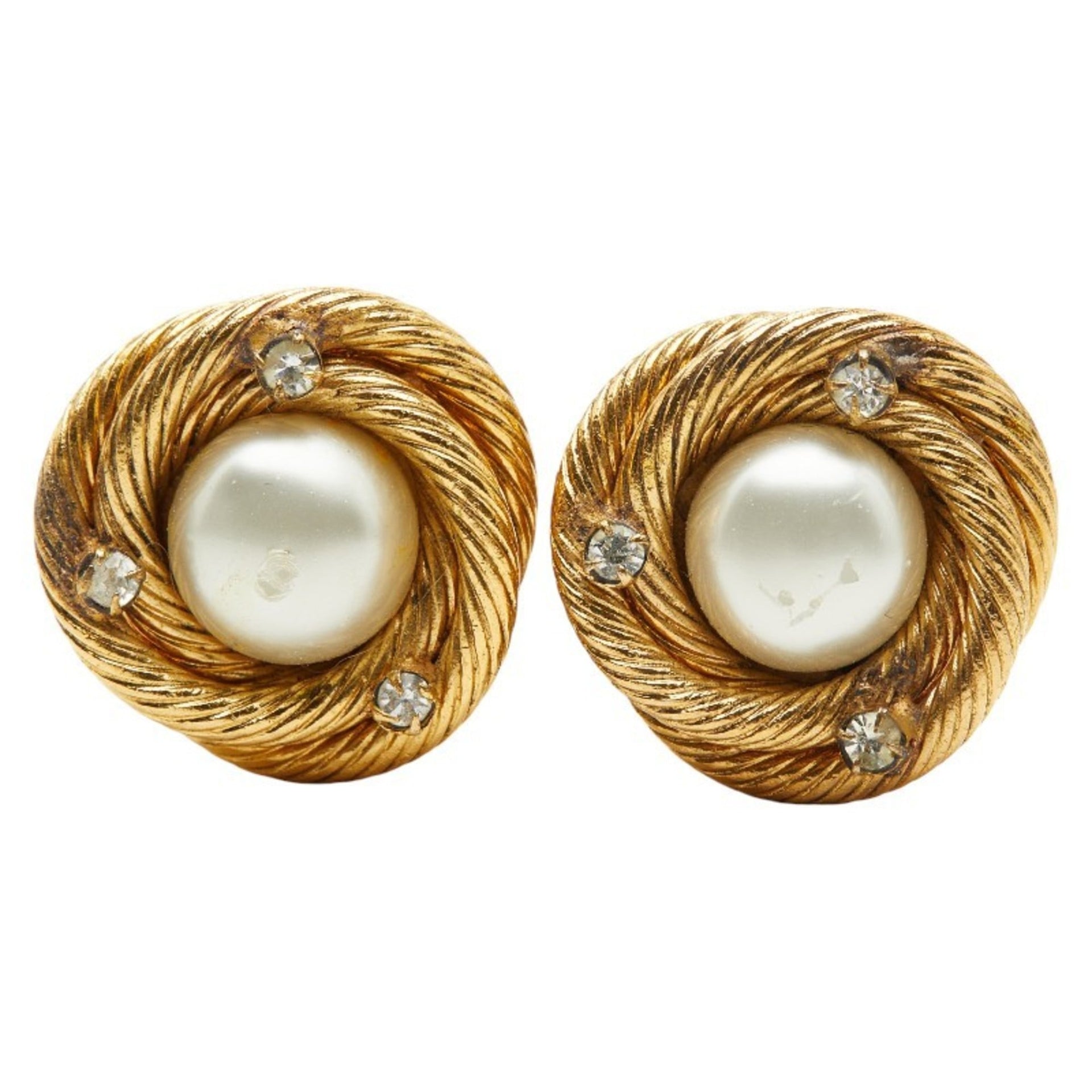 CHANEL Pearl and Rhinestone Round Earrings, Gold Plated, Faux Pearl, Women\'s
