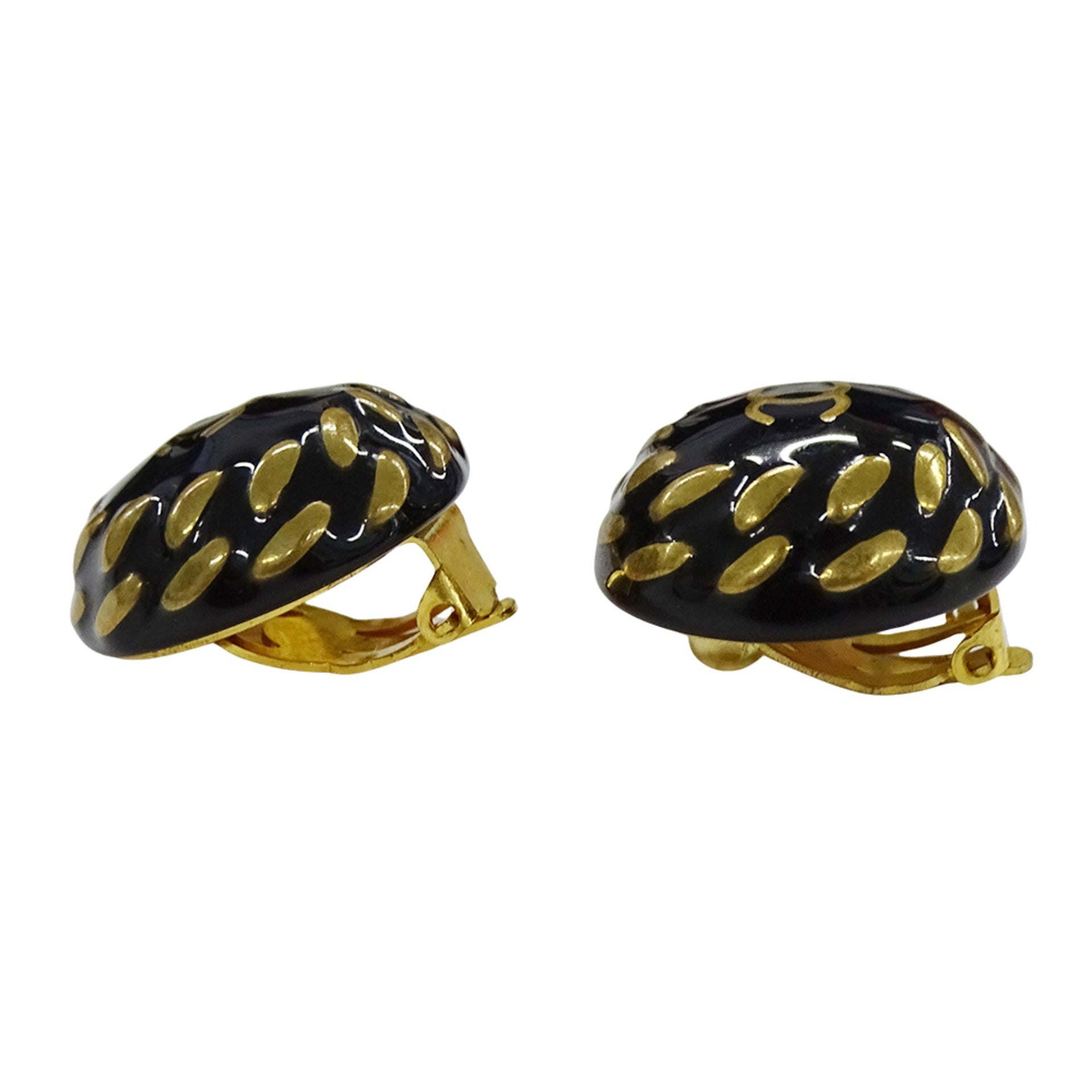 CHANEL Women\'s GP Coco Mark Earrings in Black and Gold (97A) for Both Ears