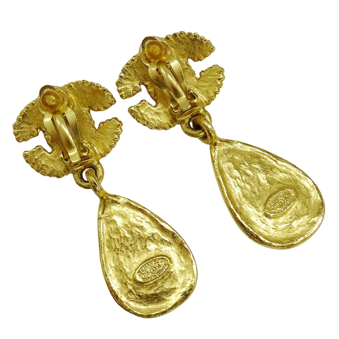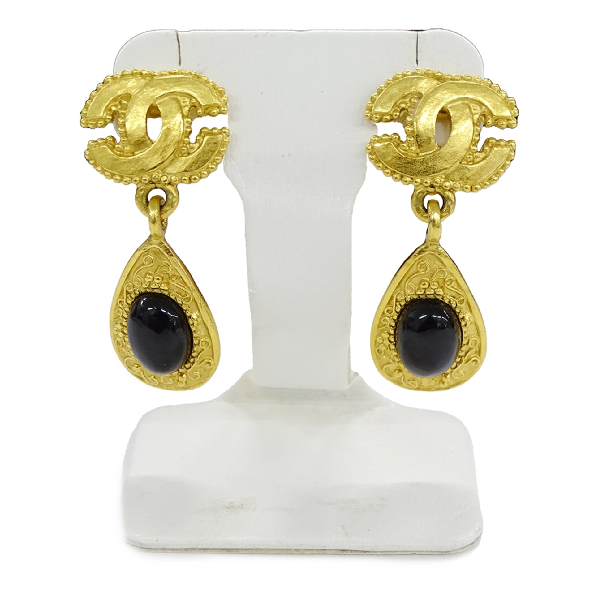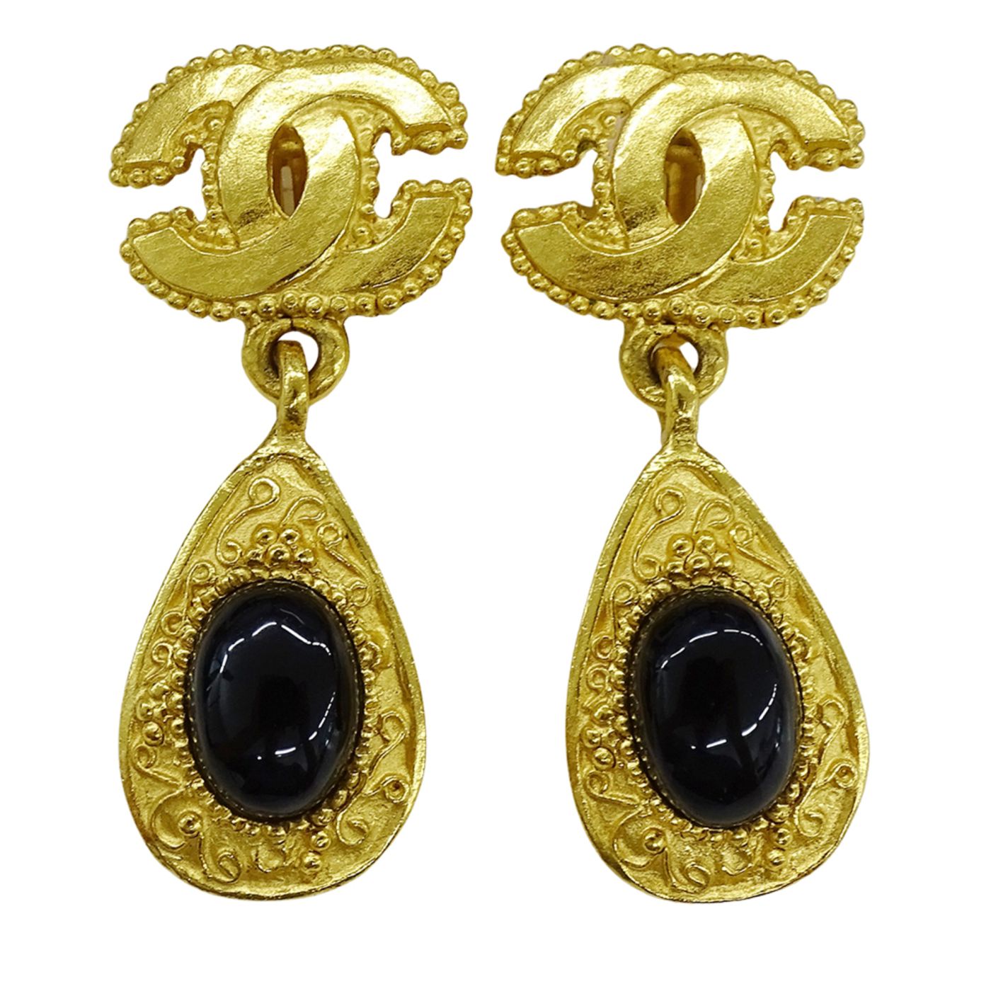 CHANEL Women\'s GP Stone Teardrop Earrings with Coco Mark Design in Gold and Black (96A) for Both Ears