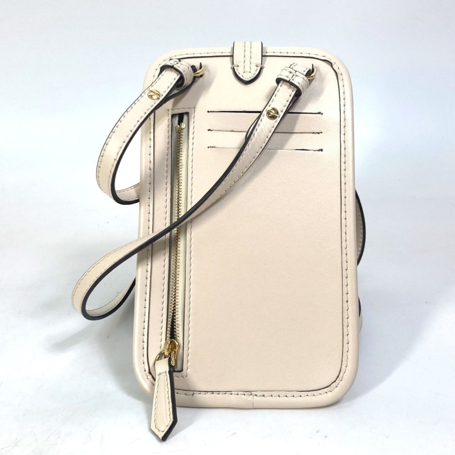 FENDI 7AS131 Zucca Logo Phone Case, Pouch, Orlock Shoulder Bag, Viscose/Leather, Beige, Women\'s