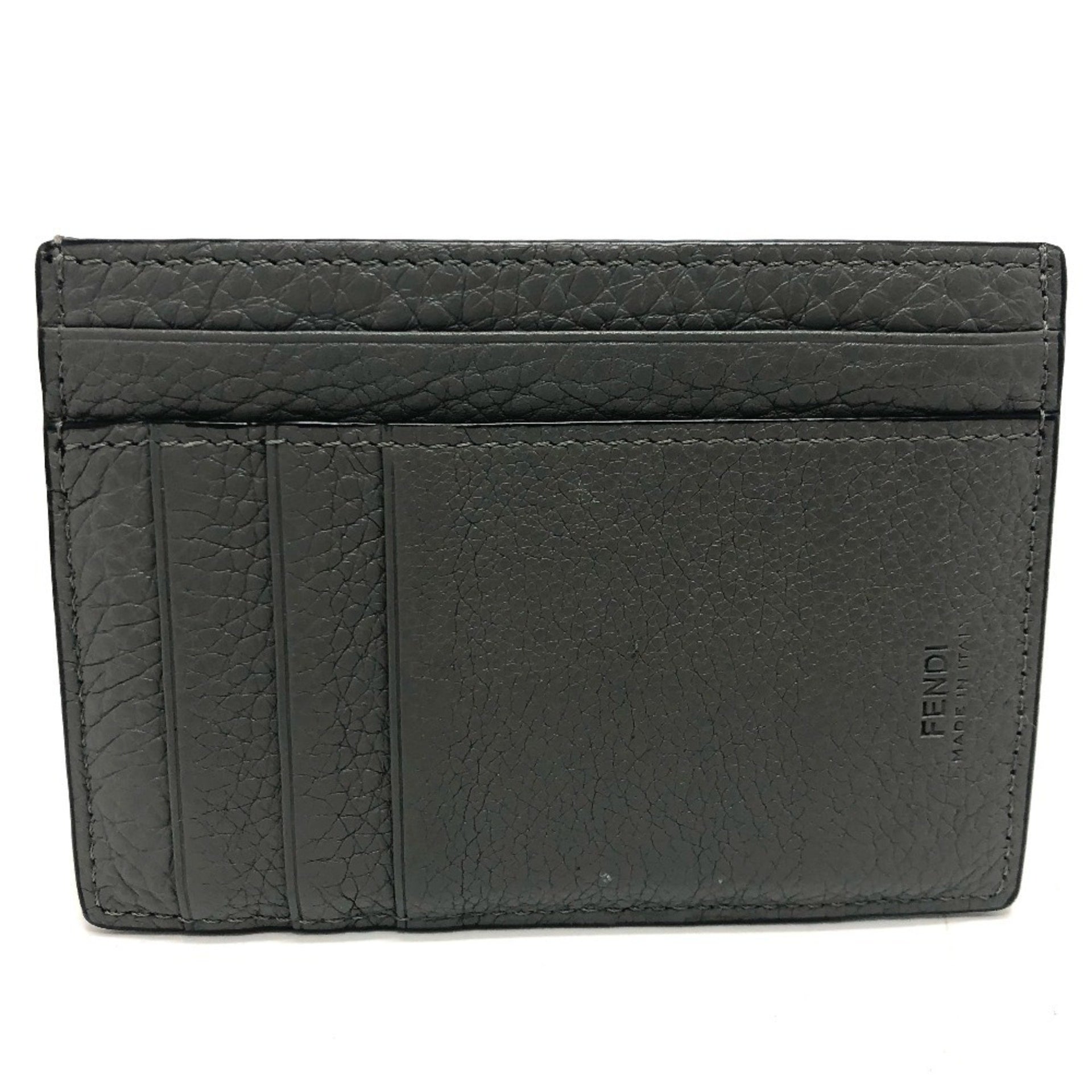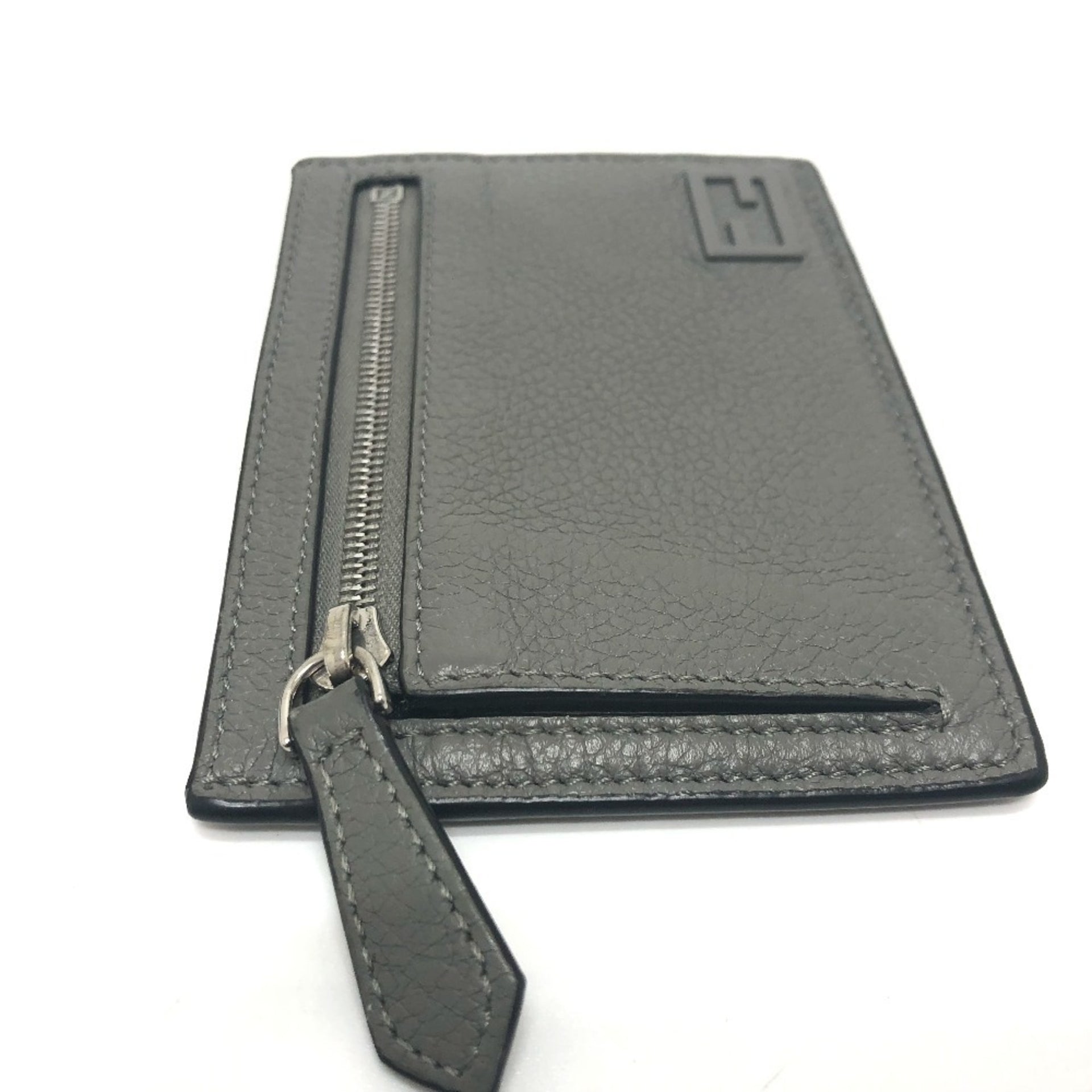 FENDI 7M0310 FF Baguette Coin Case, Card Leather, Men\'s, Gray