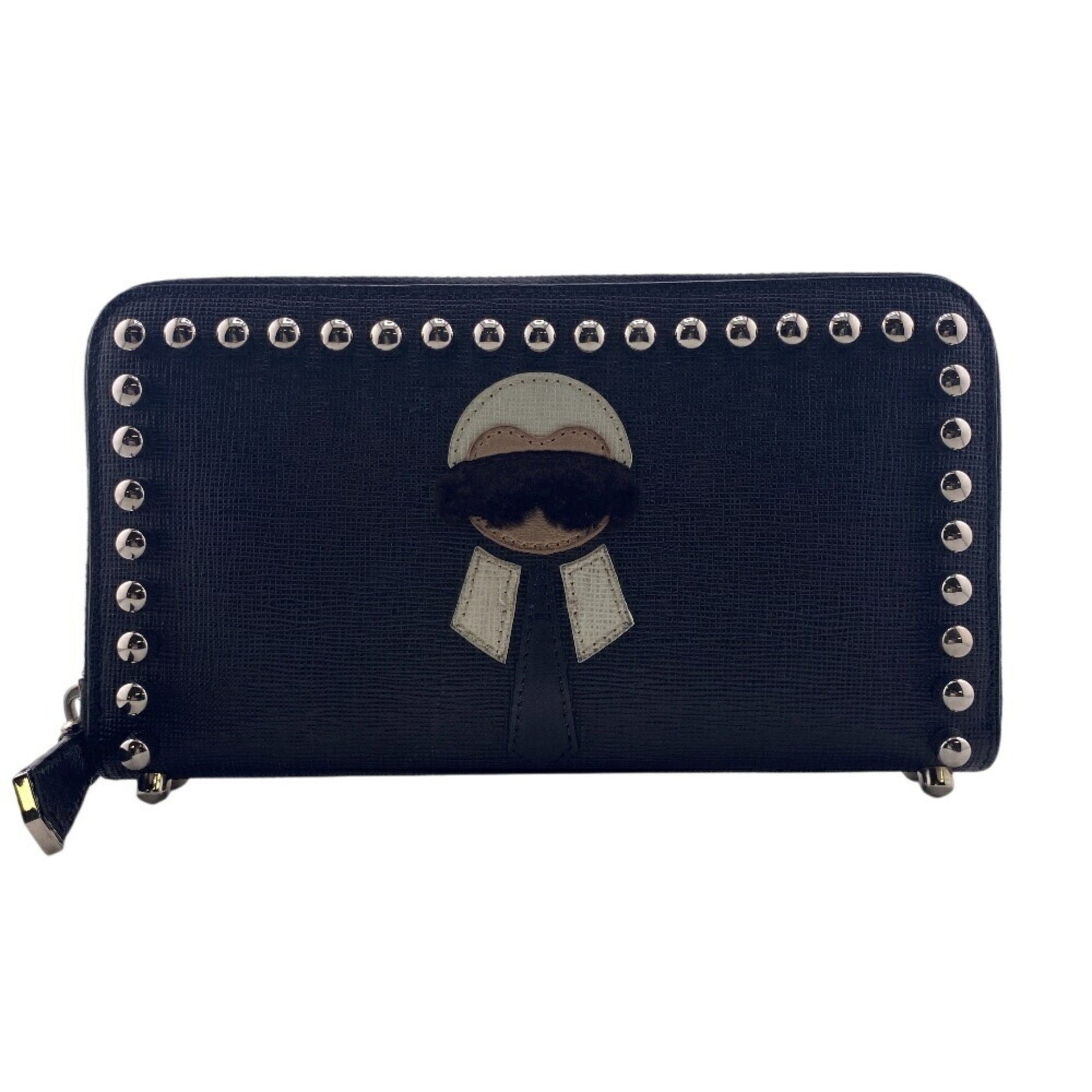 FENDI 8M0299 Round Long Wallet Black Men\'s