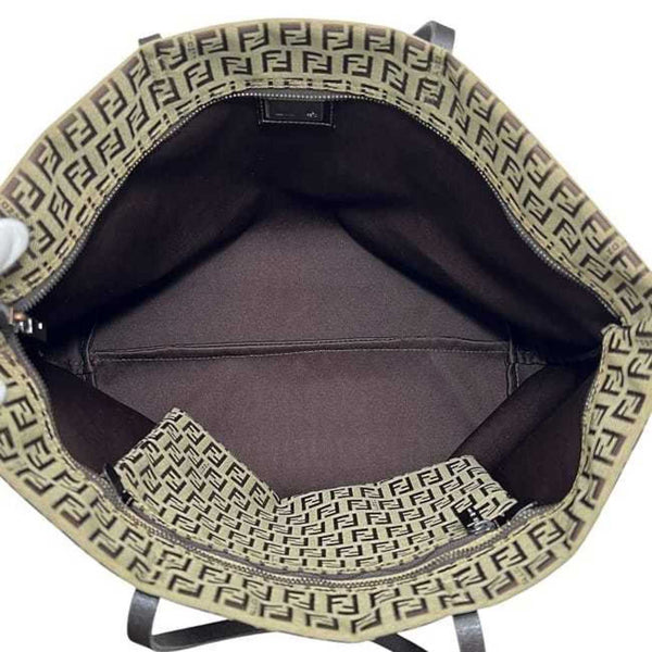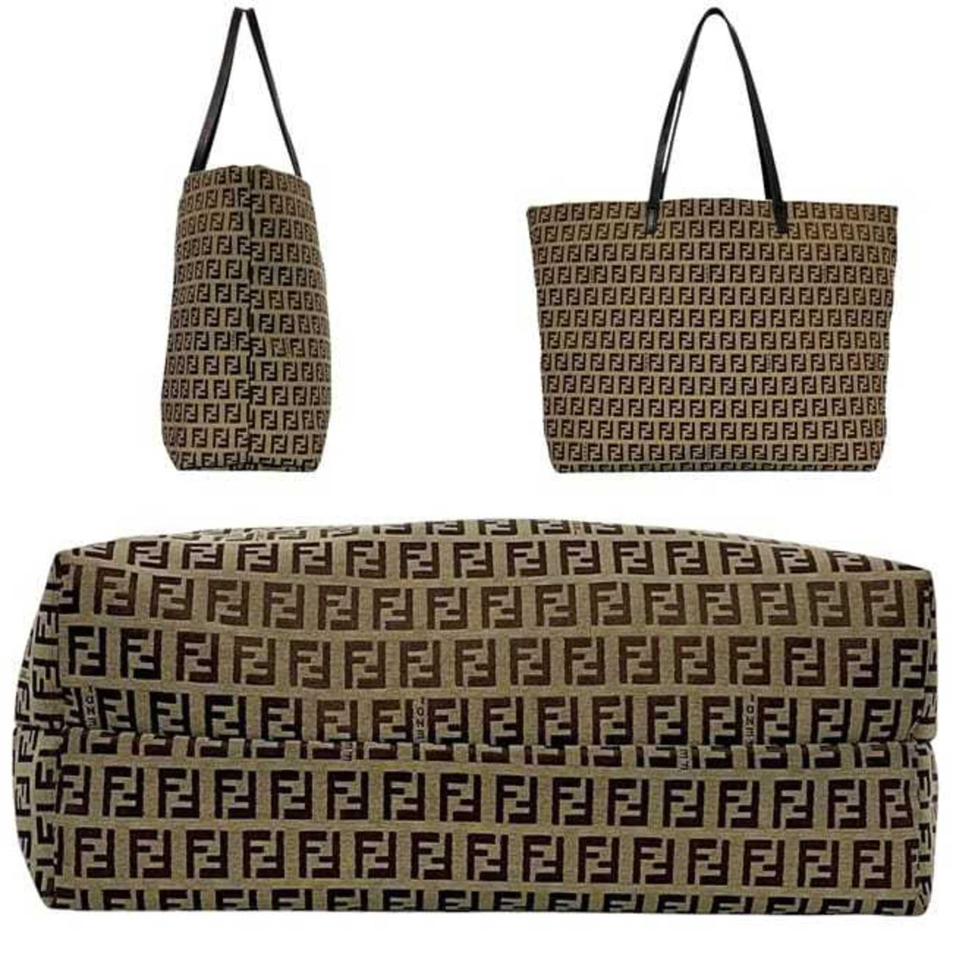 Fendi FF Tote Bag f-24261 Beige Brown Zucchino 8BH025 Canvas Leather FENDI Women\'s and Men\'s