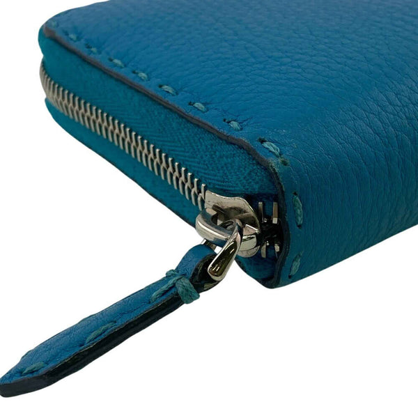 FENDI Long Wallet, Hand-Stitched Round Selleria, Blue, Women\'s
