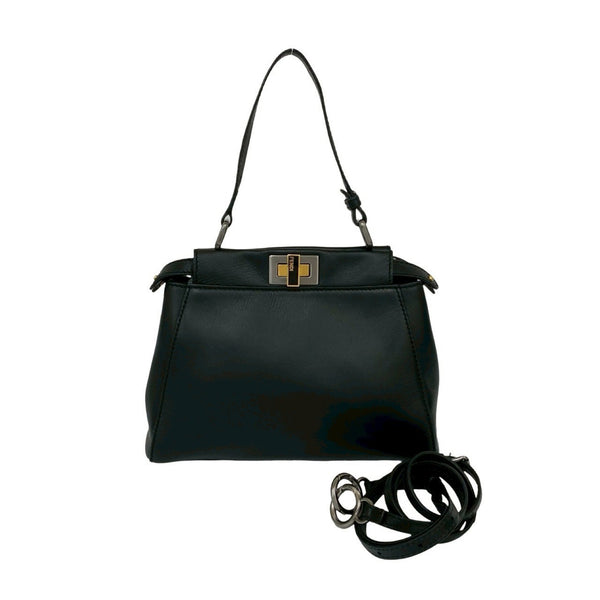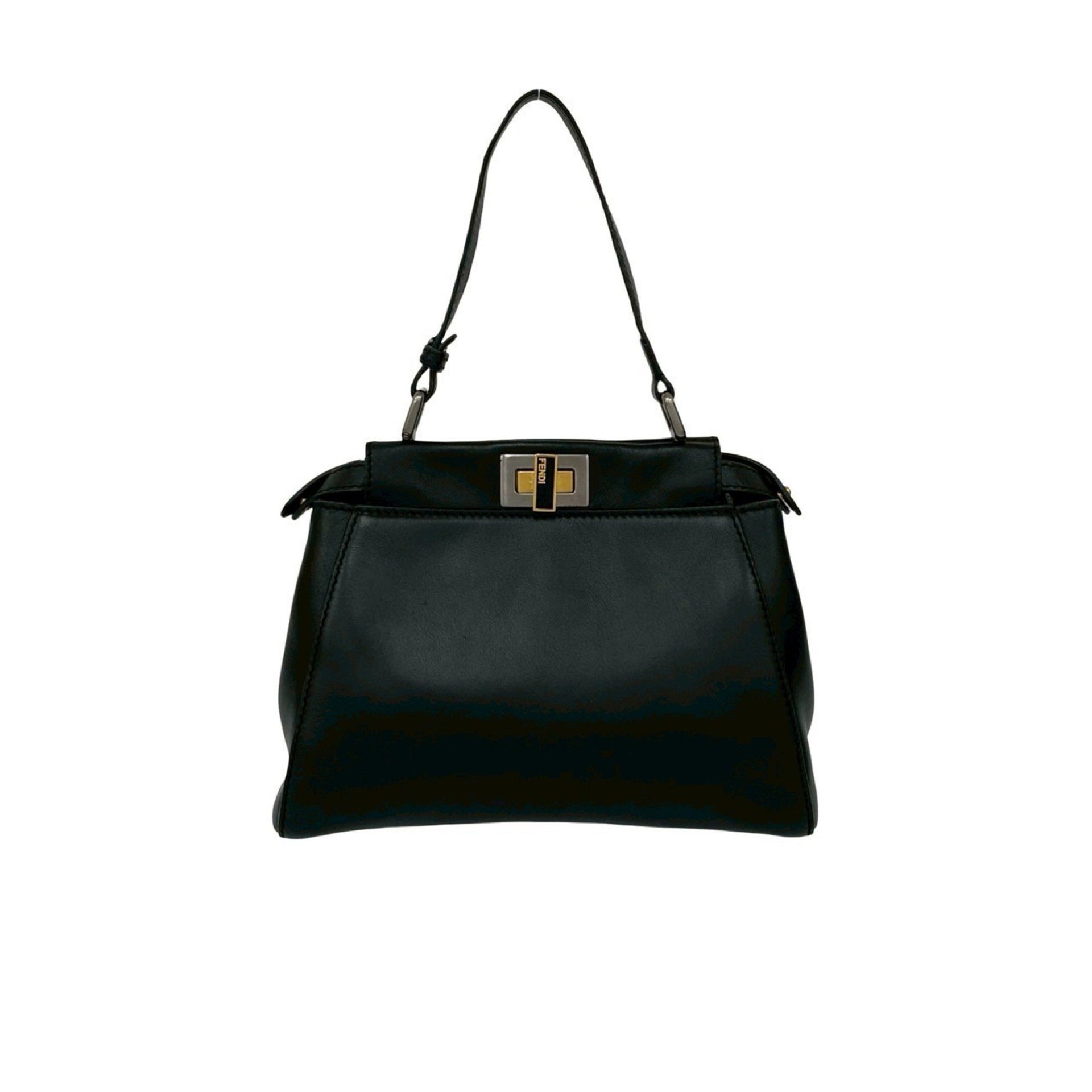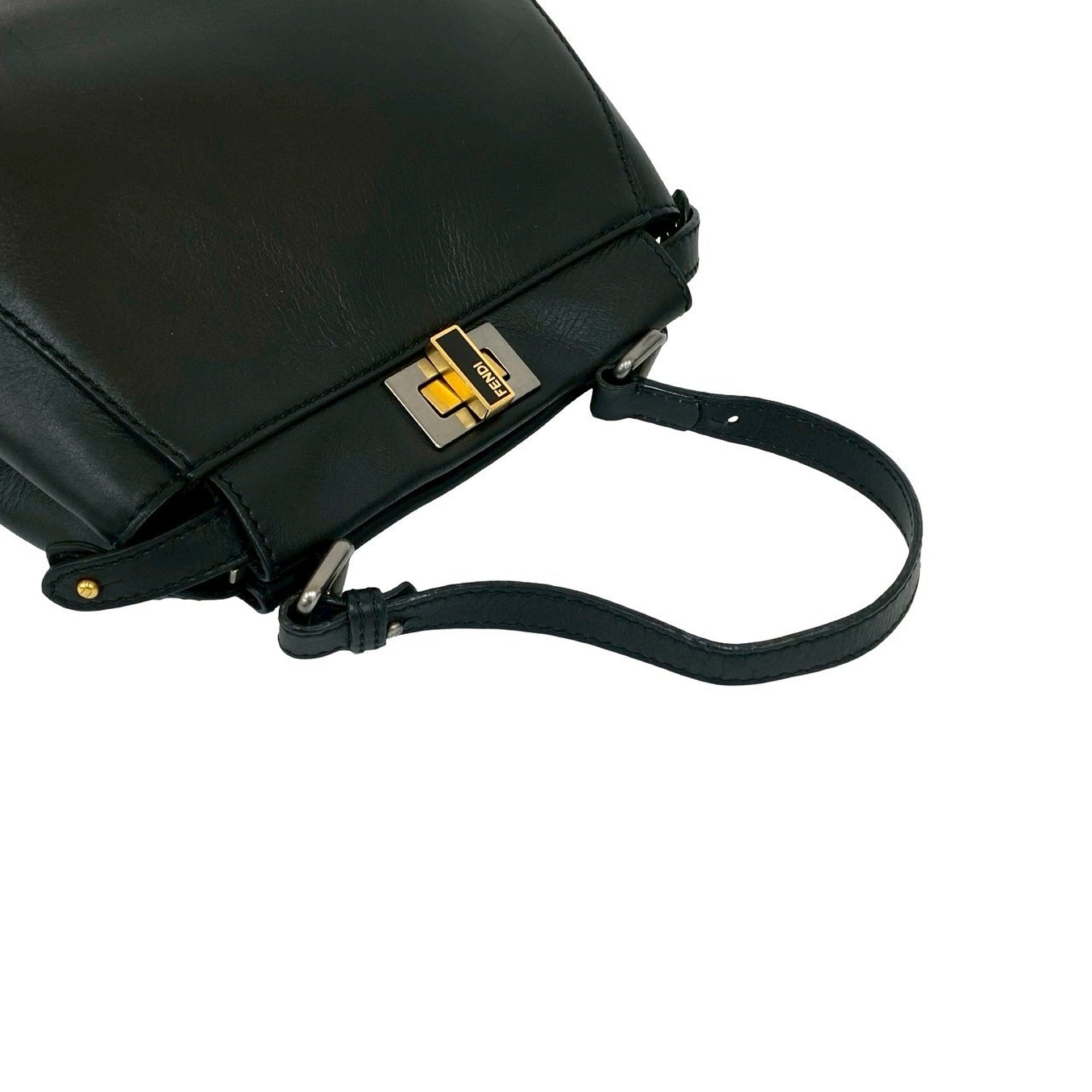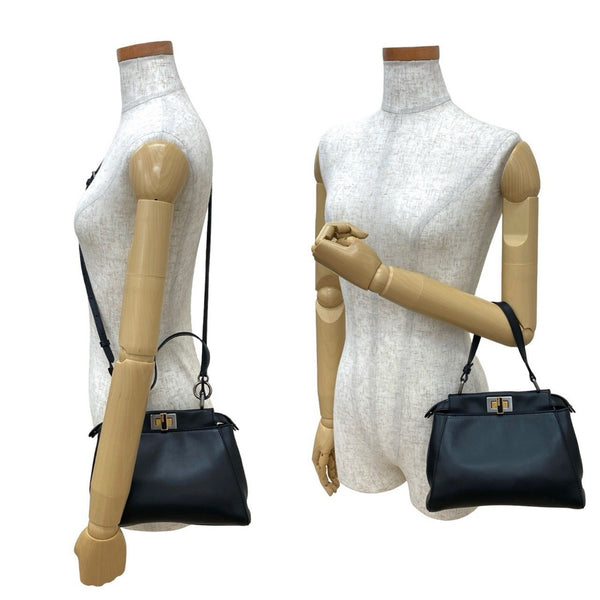 FENDI Mini Peekaboo Leather 2-Way Handbag, Boston Bag, Shoulder Black 38379