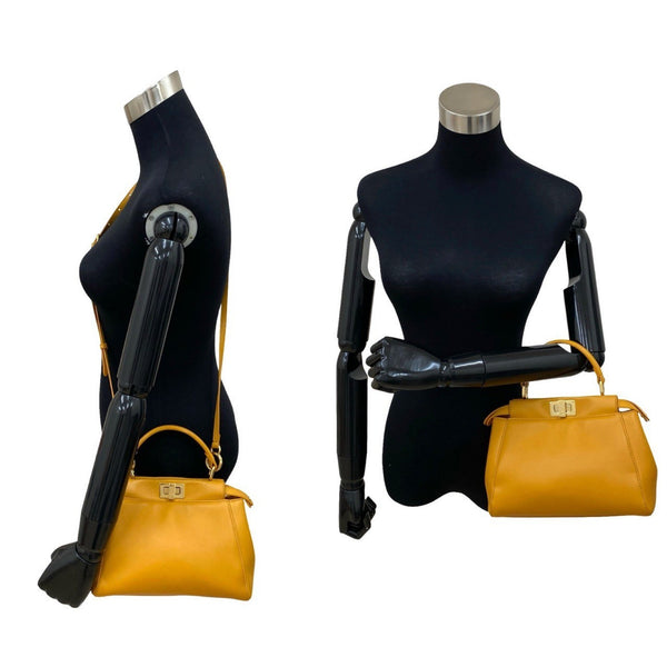 FENDI Peekaboo Mini Logo Hardware Leather Genuine 2-Way Shoulder Bag/Handbag Yellow Camel 41414