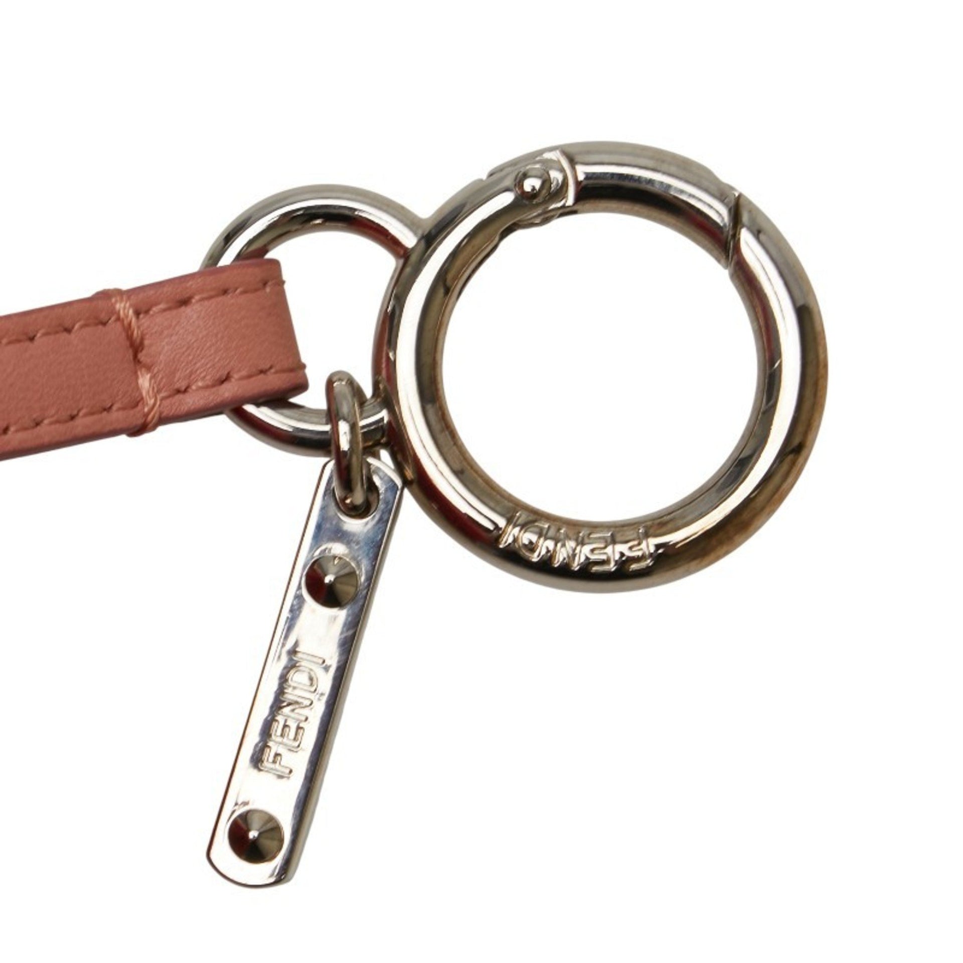 Fendi Pom Charm Bag Keychain Red Pink Fur Leather Women\'s FENDI