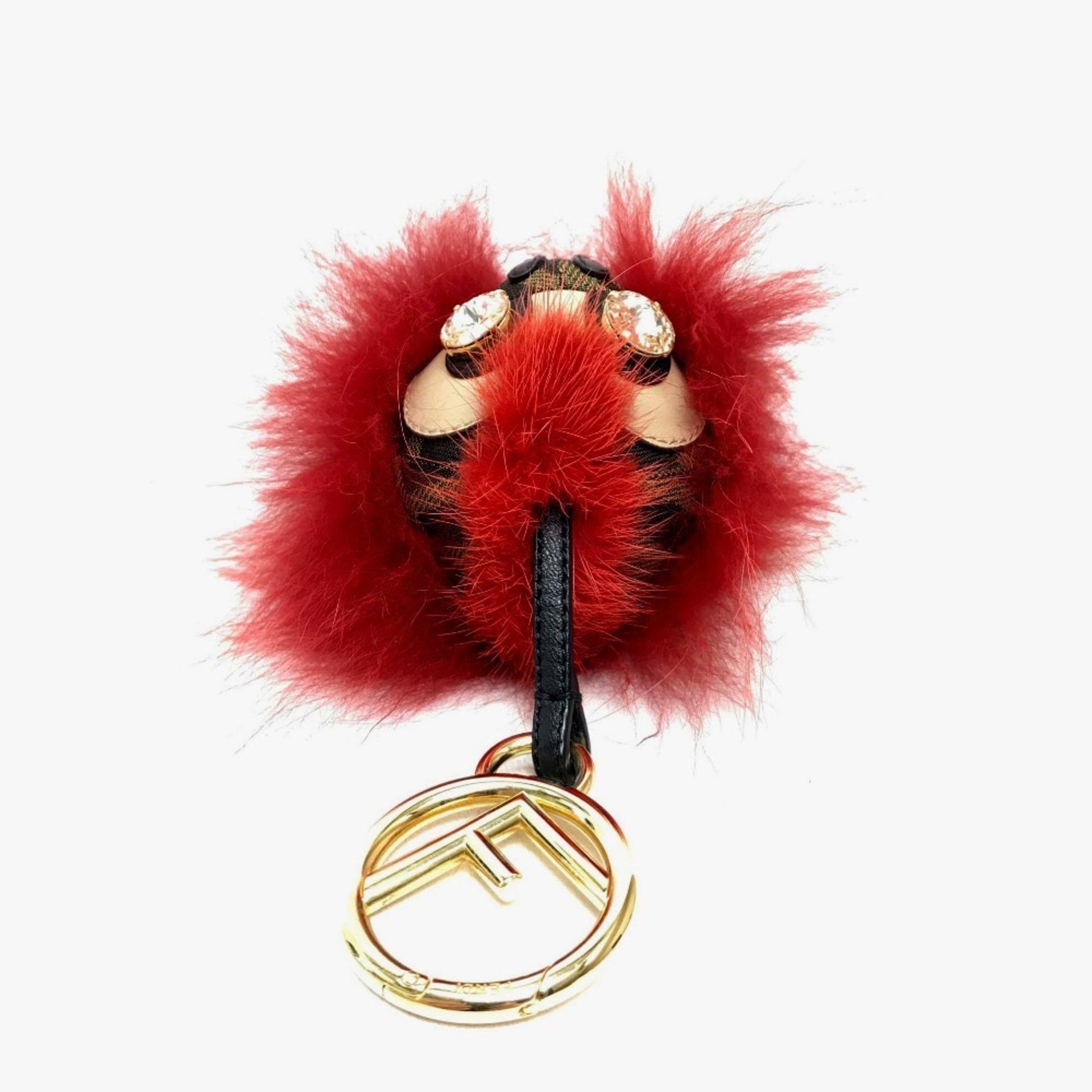 FENDI Real Fur Monster FF Pattern Key Ring with Beads, Unisex, Red and Brown