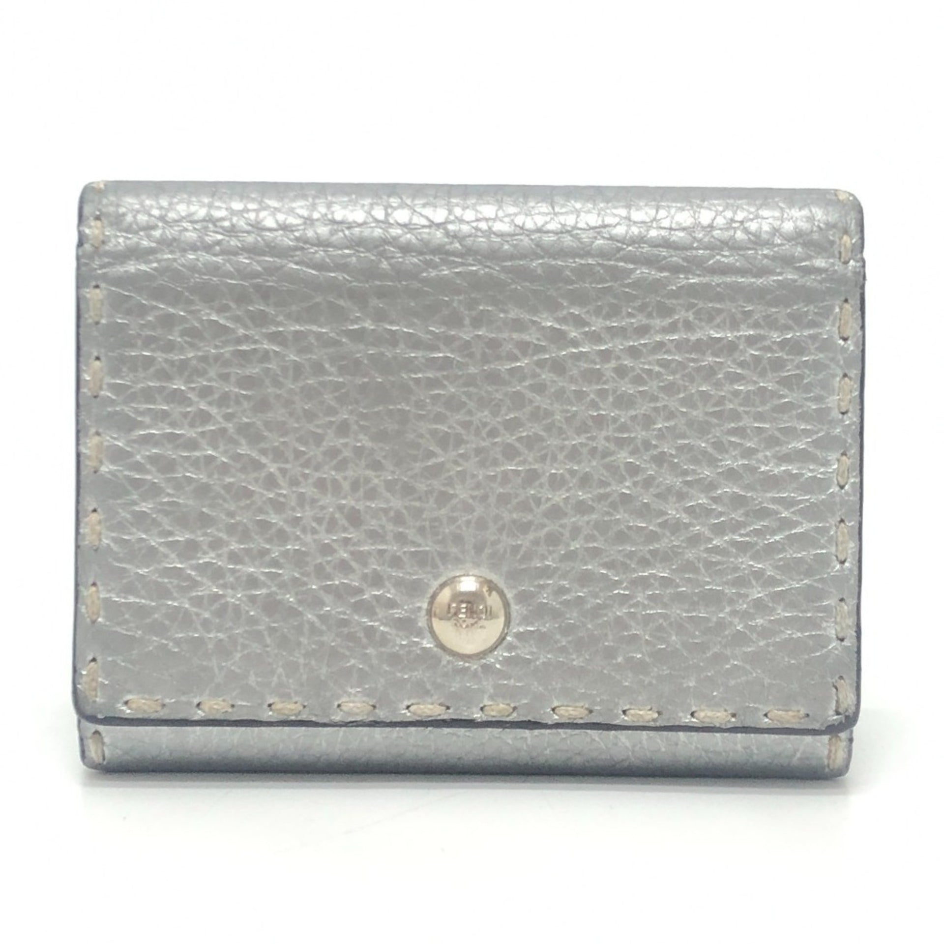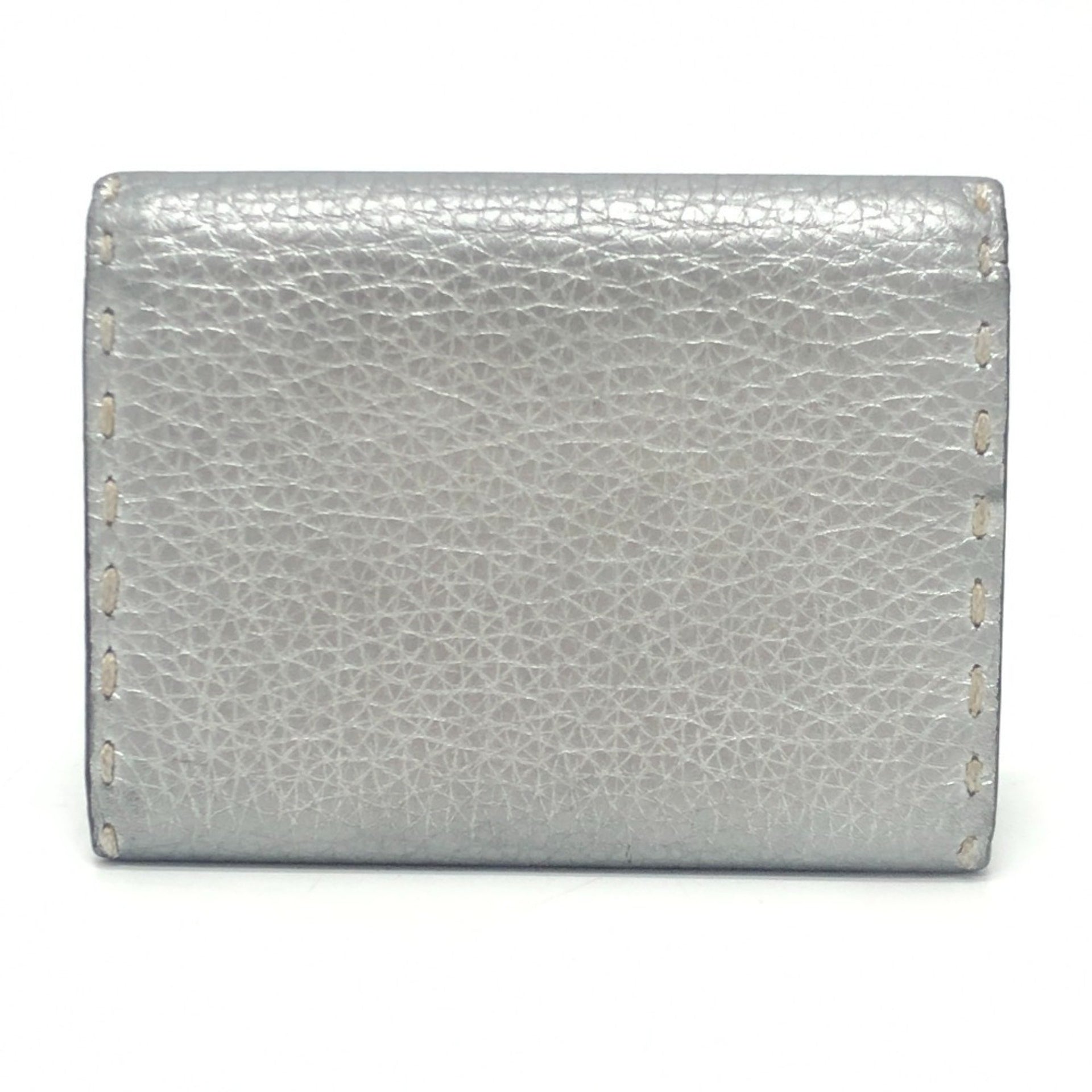 FENDI Selleria Bifold Business Card Case with Stitching, Leather, Silver, for Women