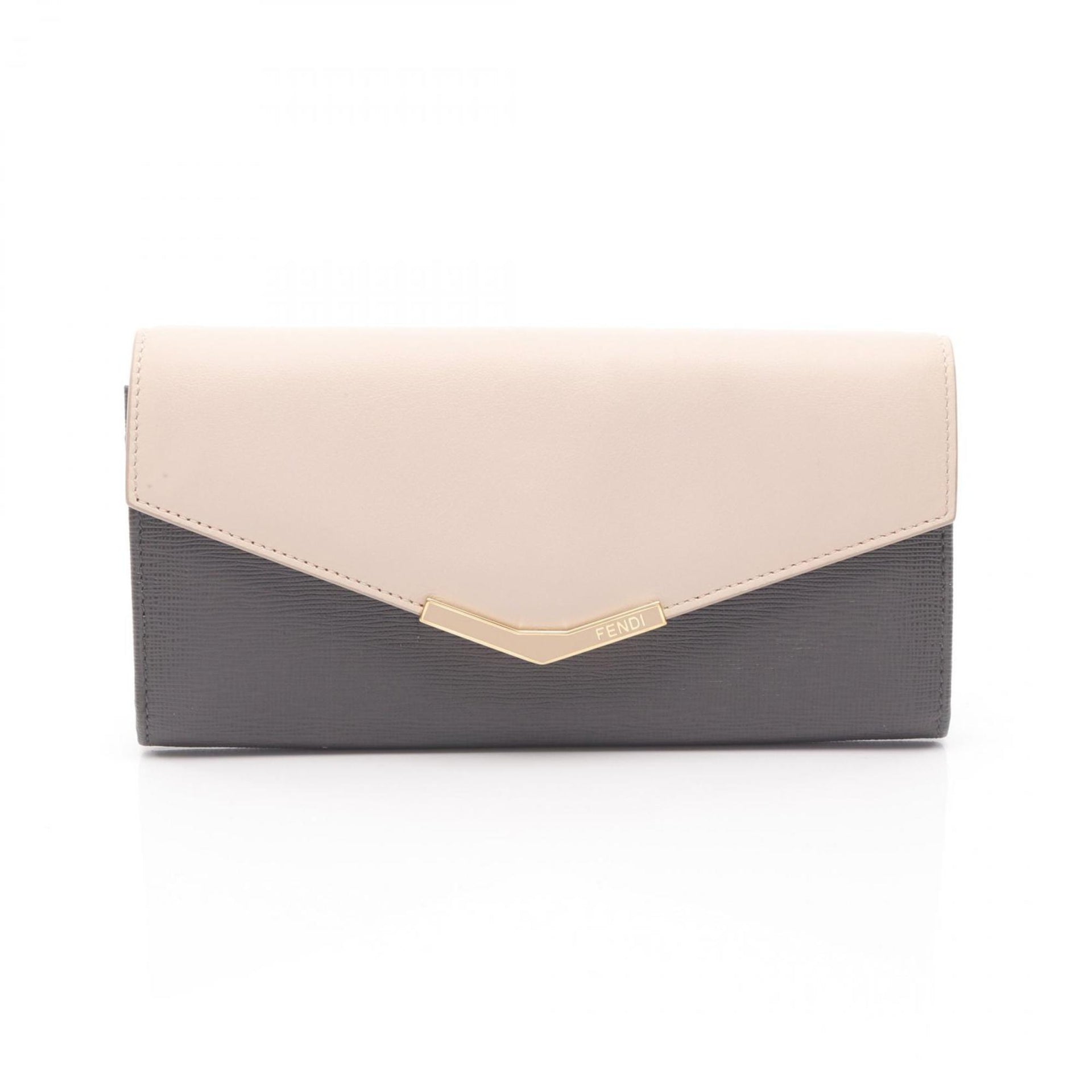 Fendi Toujours Bifold Long Wallet, Leather and Coated Canvas, Women\'s, Gray Pink, 8M0306
