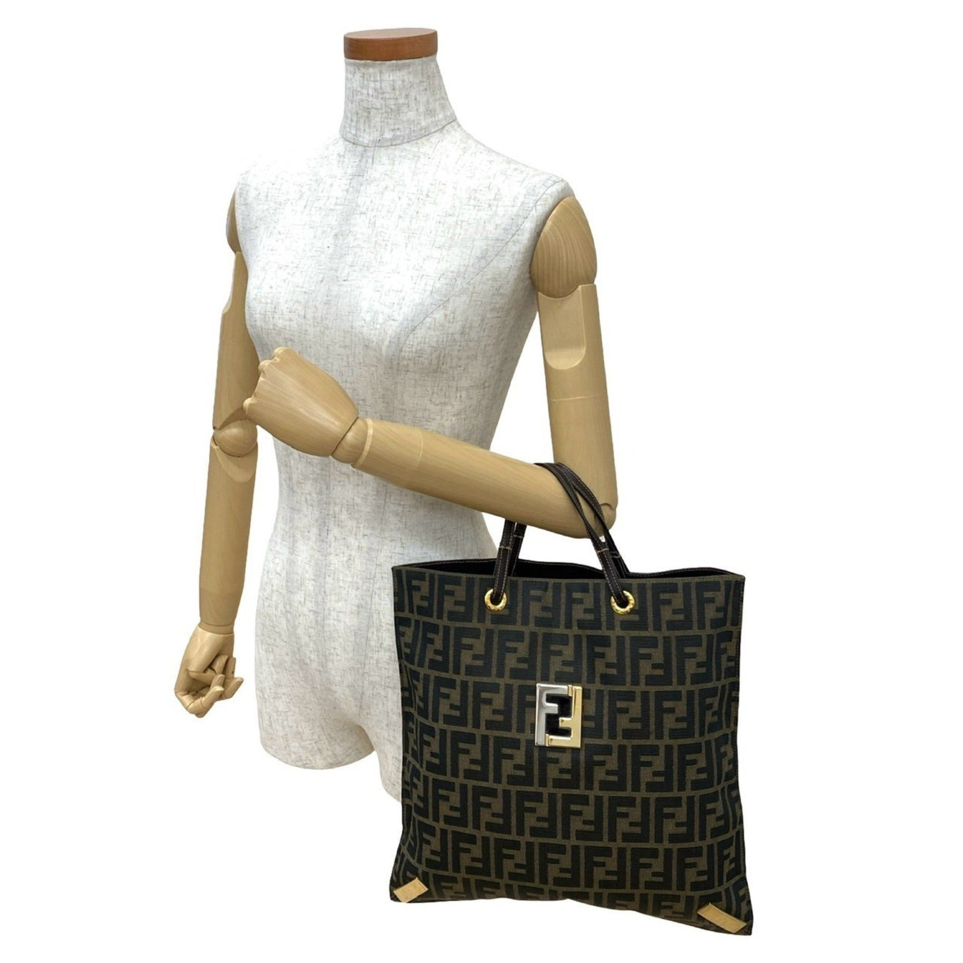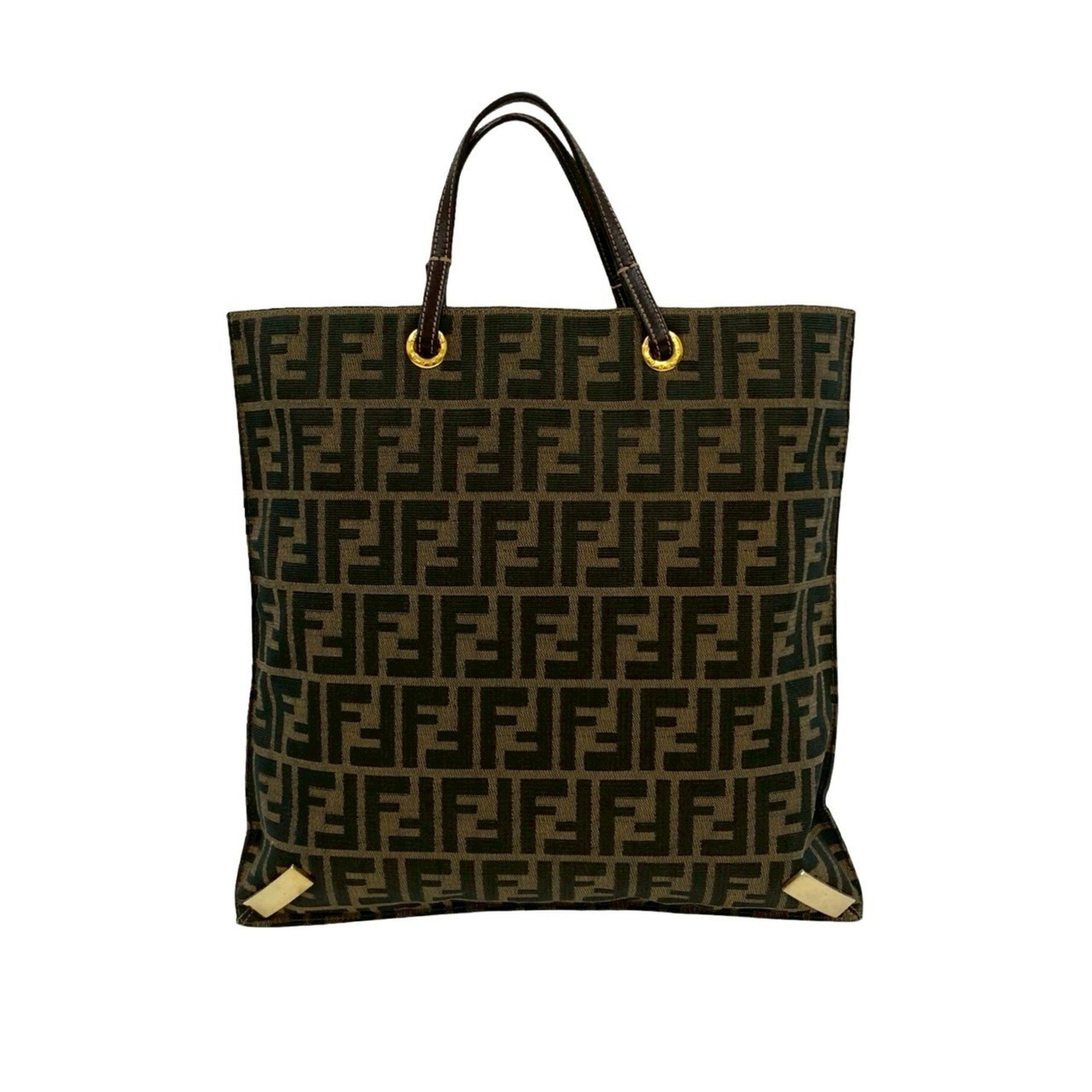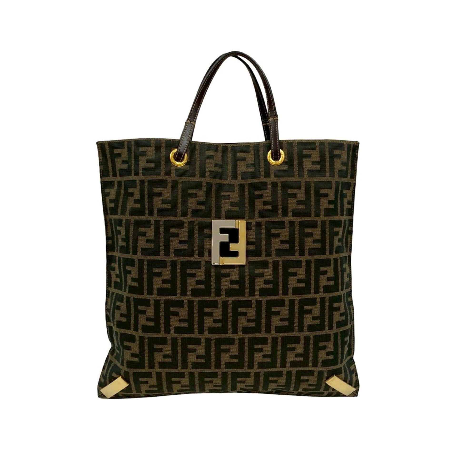 FENDI Zucca FF all-over print logo hardware canvas and leather tote bag, handbag, business brown, 28041