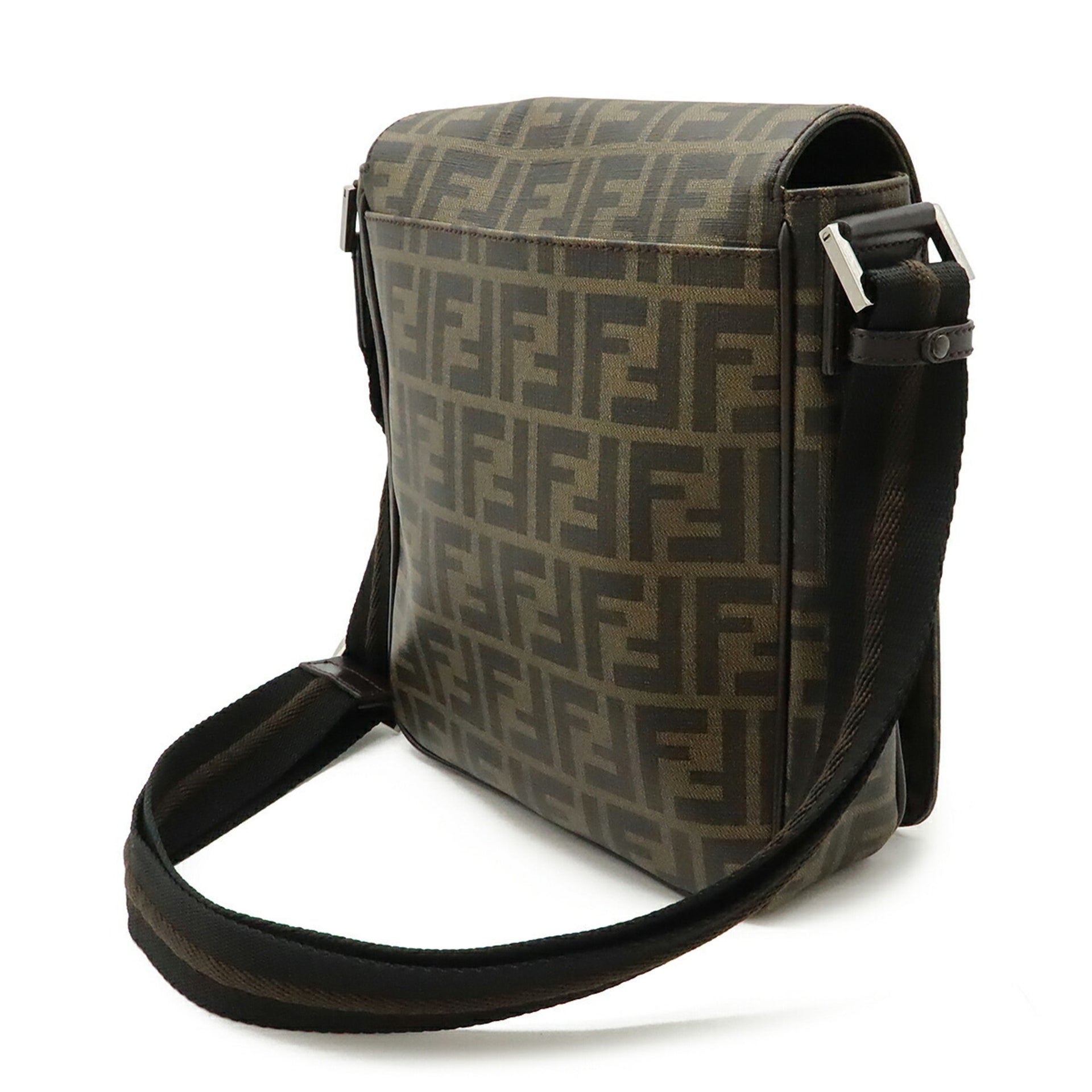 FENDI Zucca pattern shoulder bag in PVC and leather, khaki brown dark brown, 7VA215