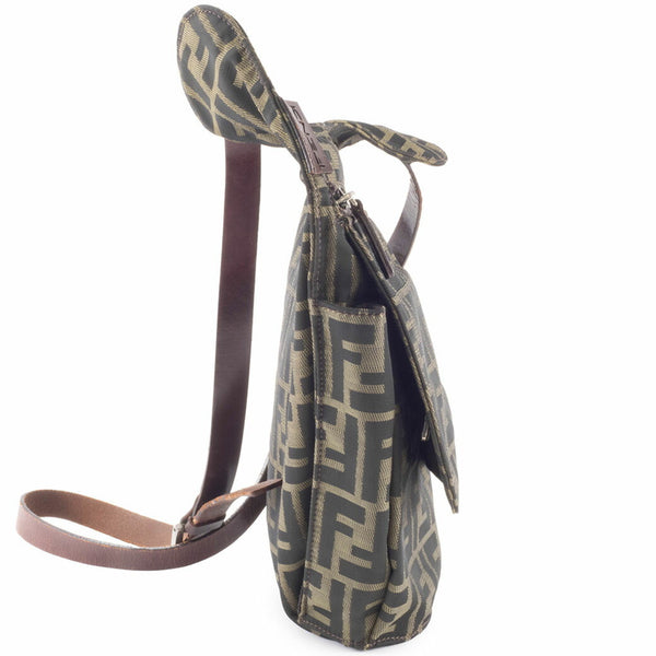 FENDI Zucca Shoulder Bag 16389 Canvas/Leather Khaki Green Women\'s