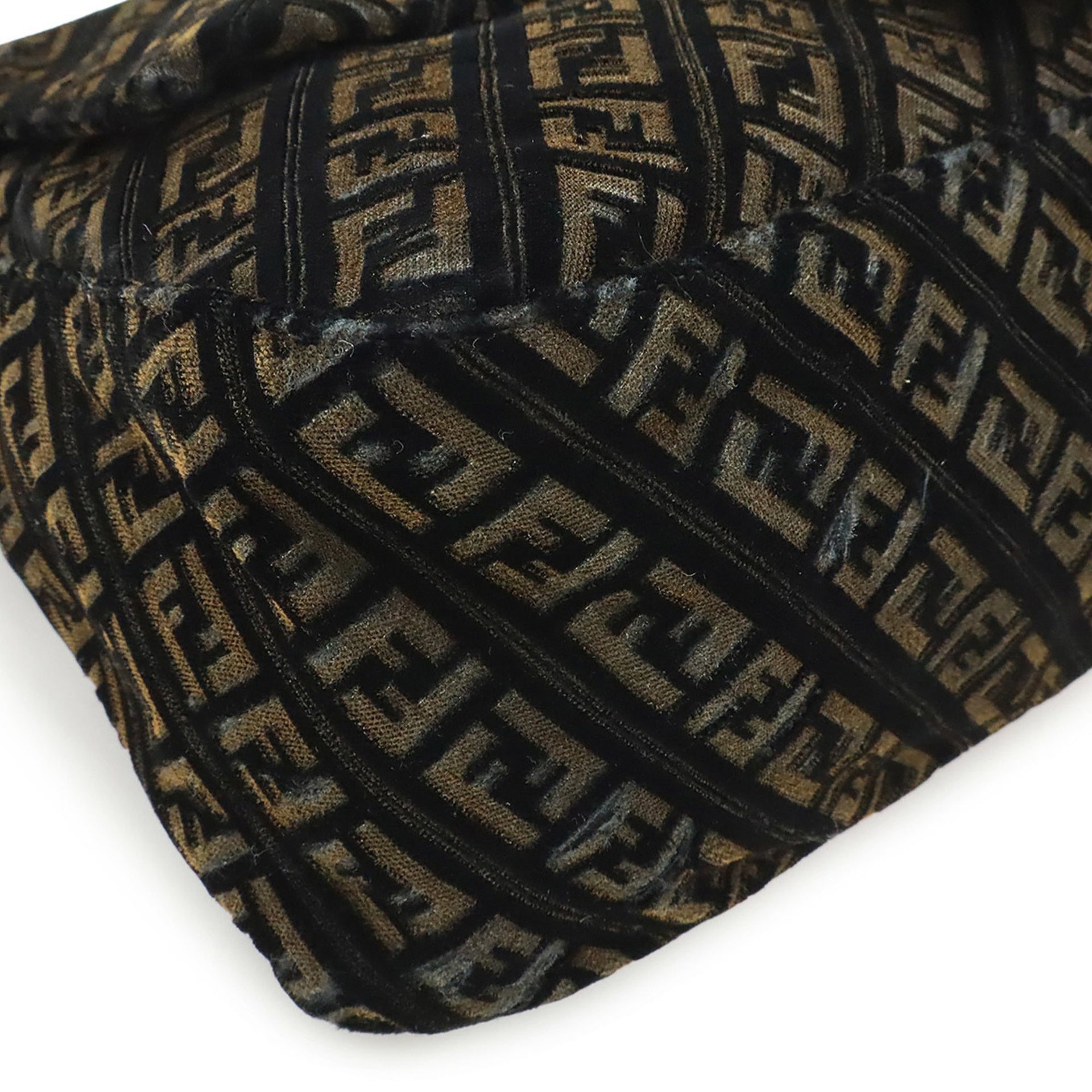 FENDI Zucchino Print Mamma Bucket Shoulder Bag in Velvet and Patent Leather, Black Brown, 8BR001