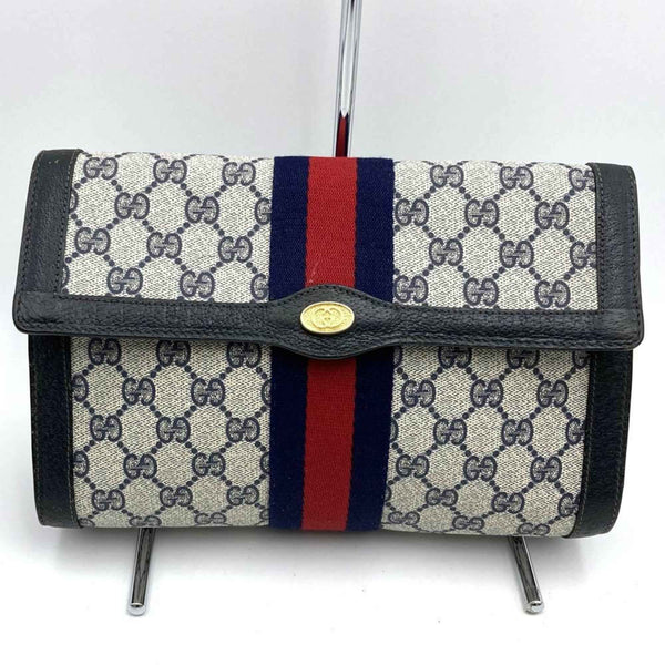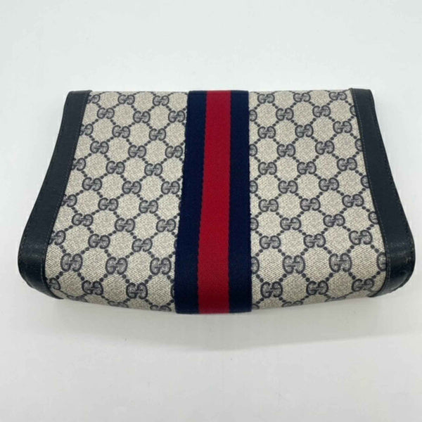 GUCCI 001 019 Clutch Bag/Second Bag Navy Sherry Line GG Supreme Canvas and Leather